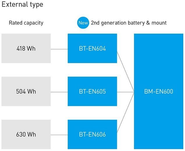 Shimano's second-generation large-capacity 630 Wh down tube battery is ideal for those who like to ride longer between charges. It features a compact design and a low centre of gravity for a more natural riding experience.