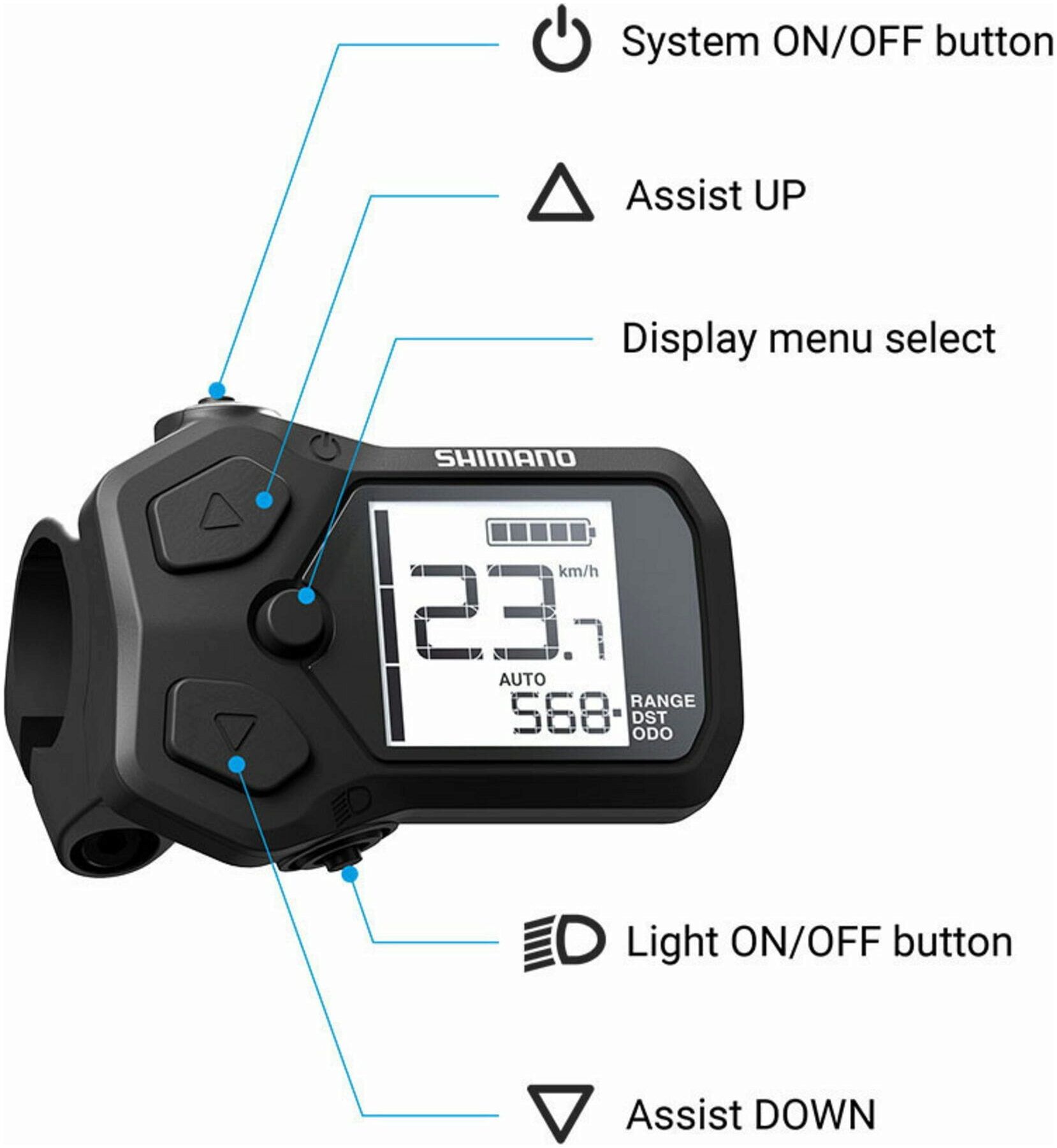 Simplify your E-City or E-Trekking bike's cockpit with the affordable, easy-to-operate Shimano SC-EN500 assist switch with LCD.