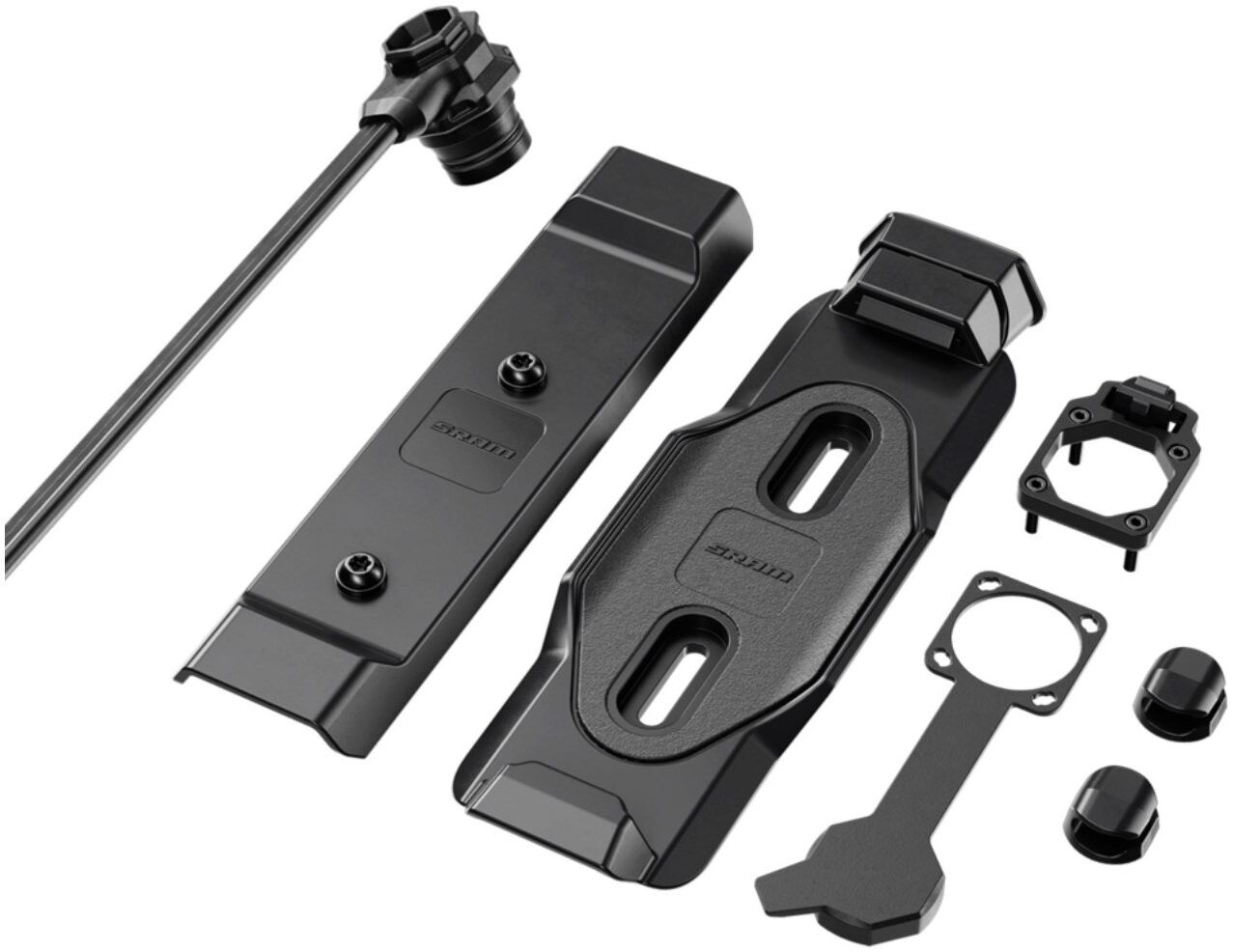 The holder kit contains everything to mount the Range Extender to frame water bottle mounts. The main holder plate can be extended with a adaptor plate, to carry a standard water bottle cage. Range extender and water bottle cage adaptor plate can be swapped easily with quick release. The kit also contains a cable (Length options of 140, 185, or 320mm) to connect the Range Extender to the system charging port on the frame. The cable can be routed on the frame with the adhesive cable guides and connect seamless to the snap-on frame connector port.