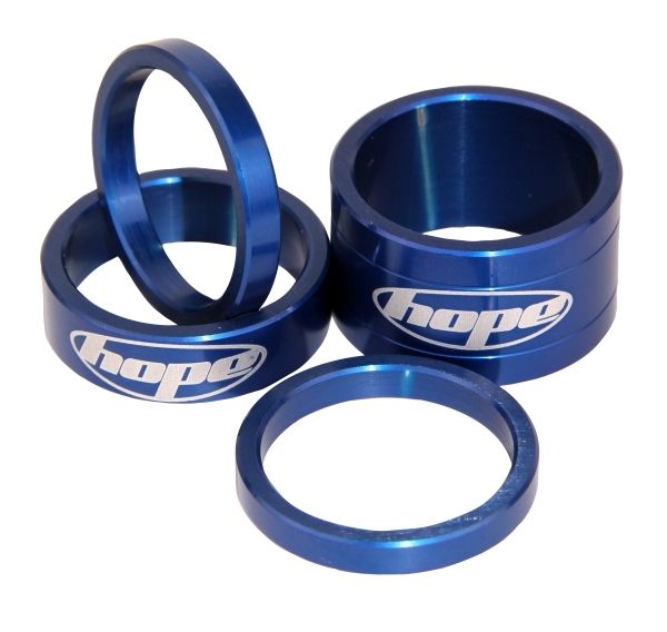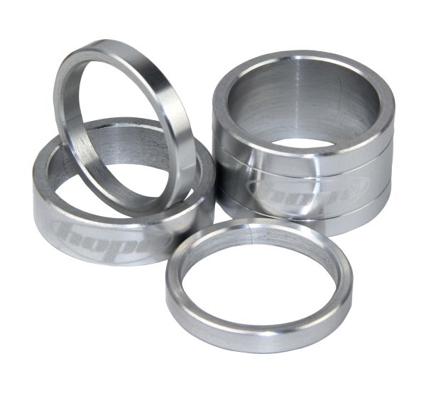 6061-grade Aluminium laser-etched 1-1/8" headset spacers, designed and manufactured by Hope in Barnoldswick UK.