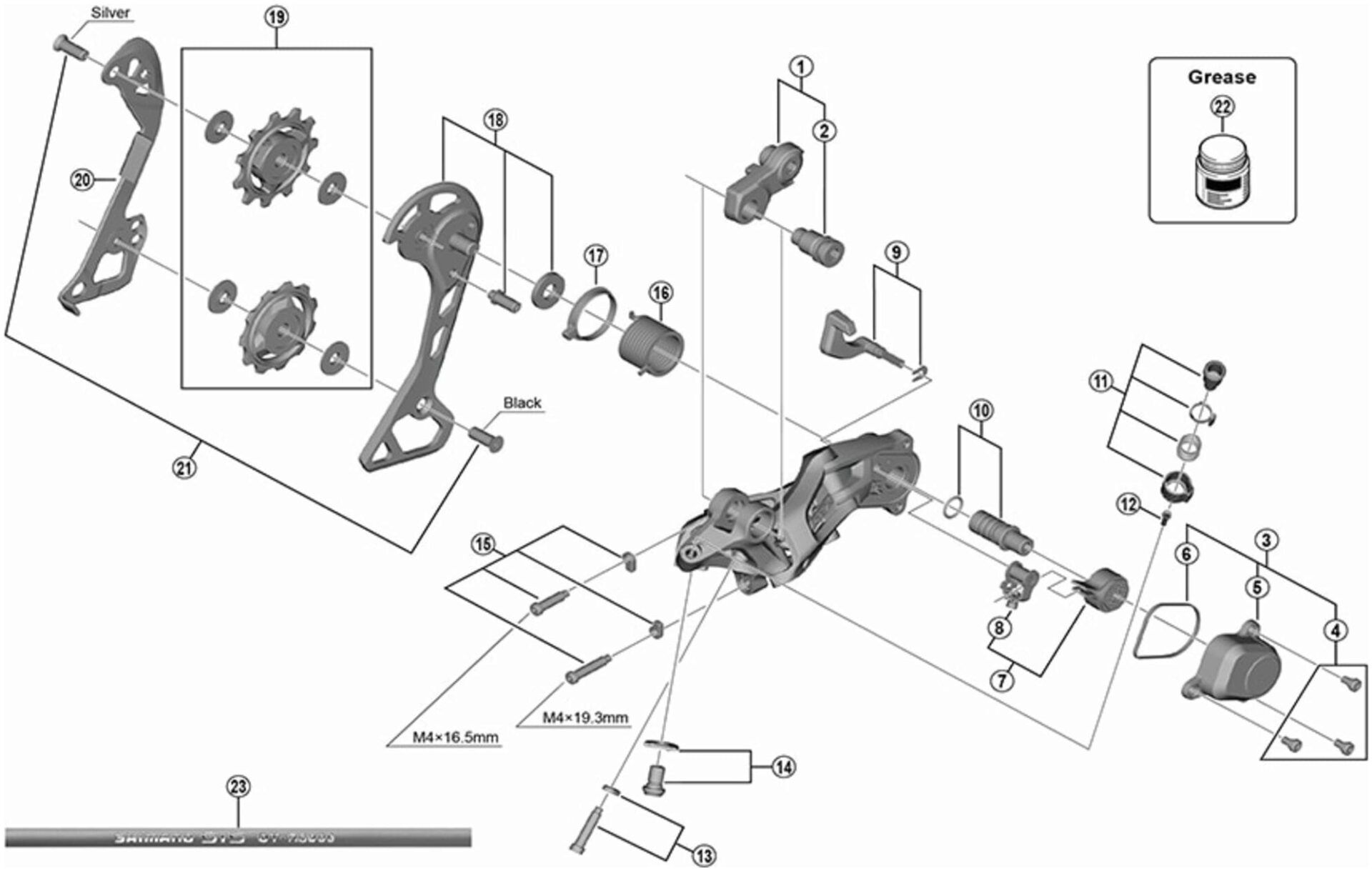 Shimano Ultegra / GRX / XT rear derailleur replacement guide and tension pulley set.