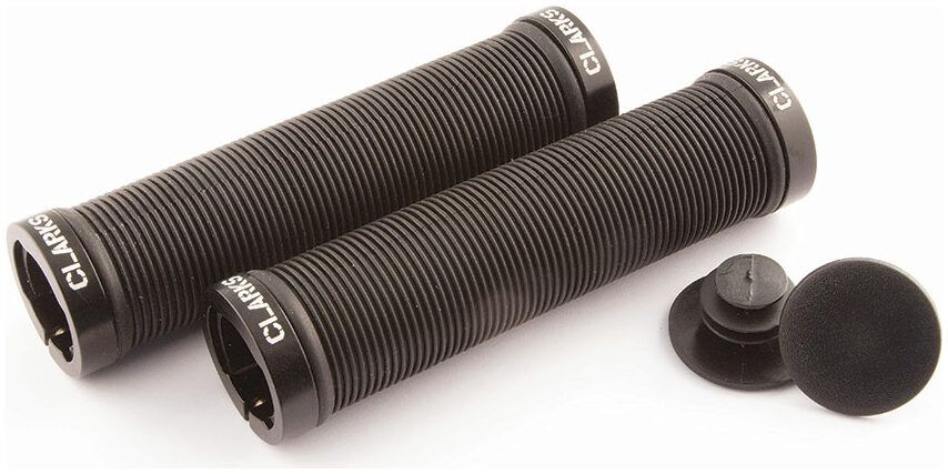 Clarks Lock-On grips are constructed with a polypropylene inner sleeve coated with thermoplastic rubber to provide a hard wearing and comfortable feel. Aluminium locking rings then secure firmly to the handlebar preventing any rotational movement of the grip. Complete with matching end plugs, Clarks Lock- On grips will enhance any MTB or Hybrid bike.