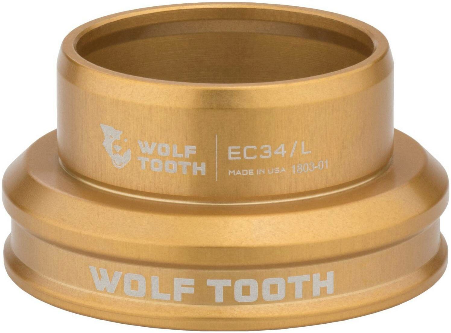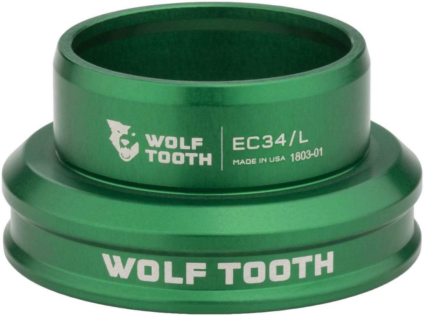 Wolf Tooth headsets are machined in the USA with aircraft-grade 6061 aluminium. Wolf Tooth's headsets have three levels of superior custom sealing to protect bearings from the elements and prolong the life of the headset. They are designed to be lightweight, strong, and durable. Available in a variety of colors. These EC headsets are for frames with external bearing cups, which places the bearing outside of the frame with these headsets. Premium Headsets with Enduro stainless steel bearings have a lifetime warranty on the bearings.