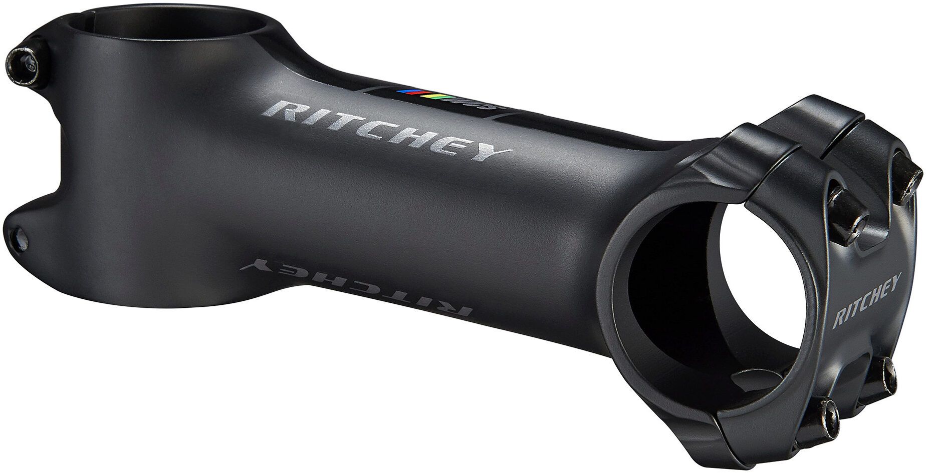 The WCS C220 84D Stem offers 6° of positive or negative rise. First proven on the Ritchey Trail Stem, the C220 handlebar clamp design creates a more secure interface by wrapping a full 220° over the handlebar. Bolt forces are aligned with the clamp so that the stem body 'embraces' the handlebar, which is less prone to damaging lightweight bars. This clamp design allows for a lighter faceplate and stem body with no sacrifice in strength or stiffness.