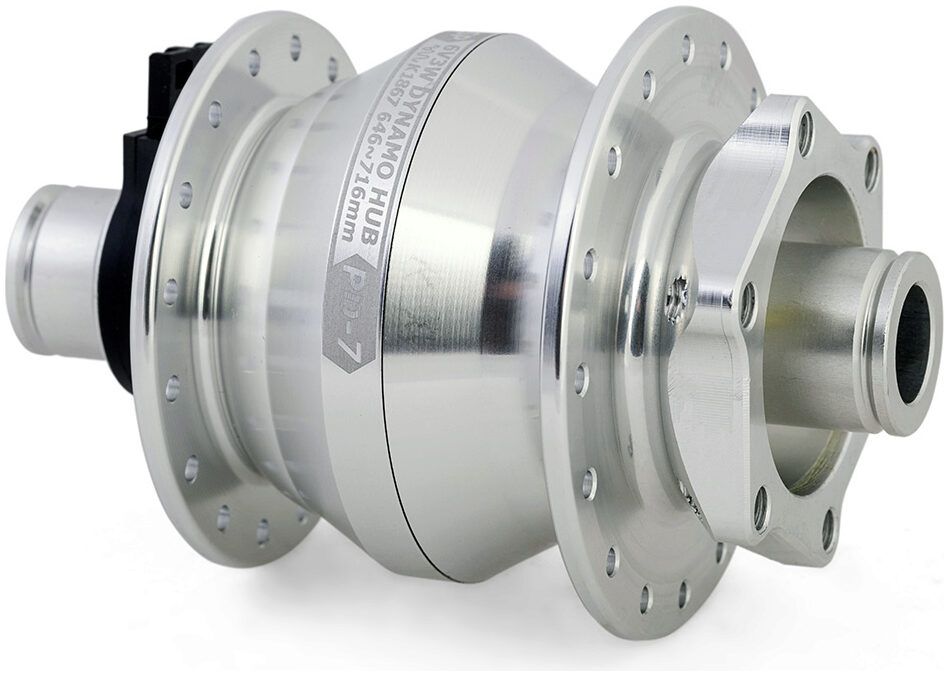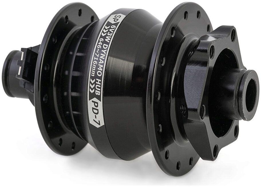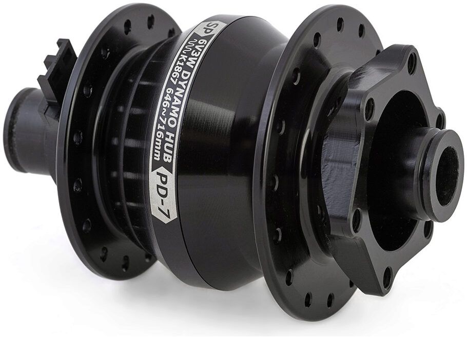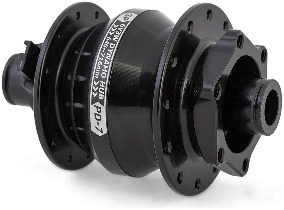 This 12mm thru-axle hub is ideally suited to 26-inch/700C wheels at 6V3W output and perfect for 6-bolt disc brakes. For all new 7 series, SP Dynamo packed more innovation, more durable features, and more surprises into this dynamo hub than ever before. The PD-7 is the lightest weight on the 12mm thru-axle dynamo hub market, which only has 385g.