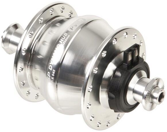 SP respects the 6V3W German standard. All SP dynamo hubs are compatible with standard hub dynamo products including dynamo lamps and converters for USB powered devices. Enjoy small and light.