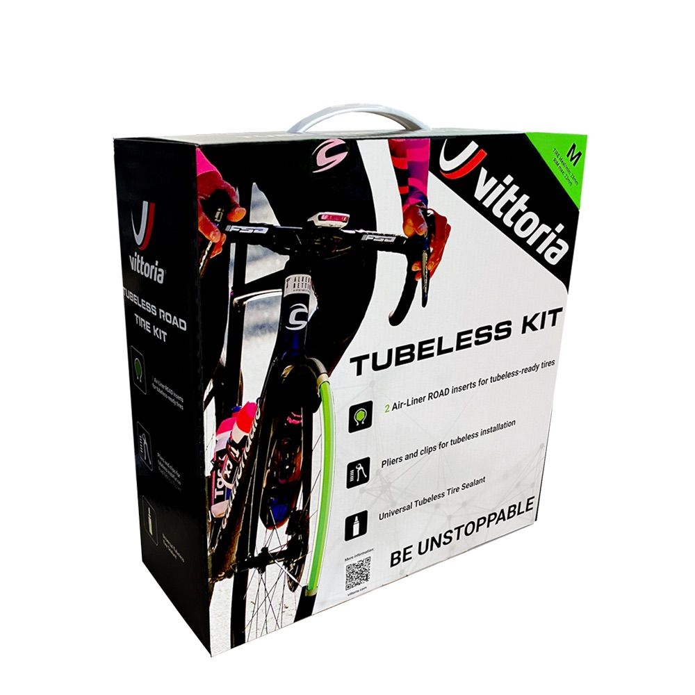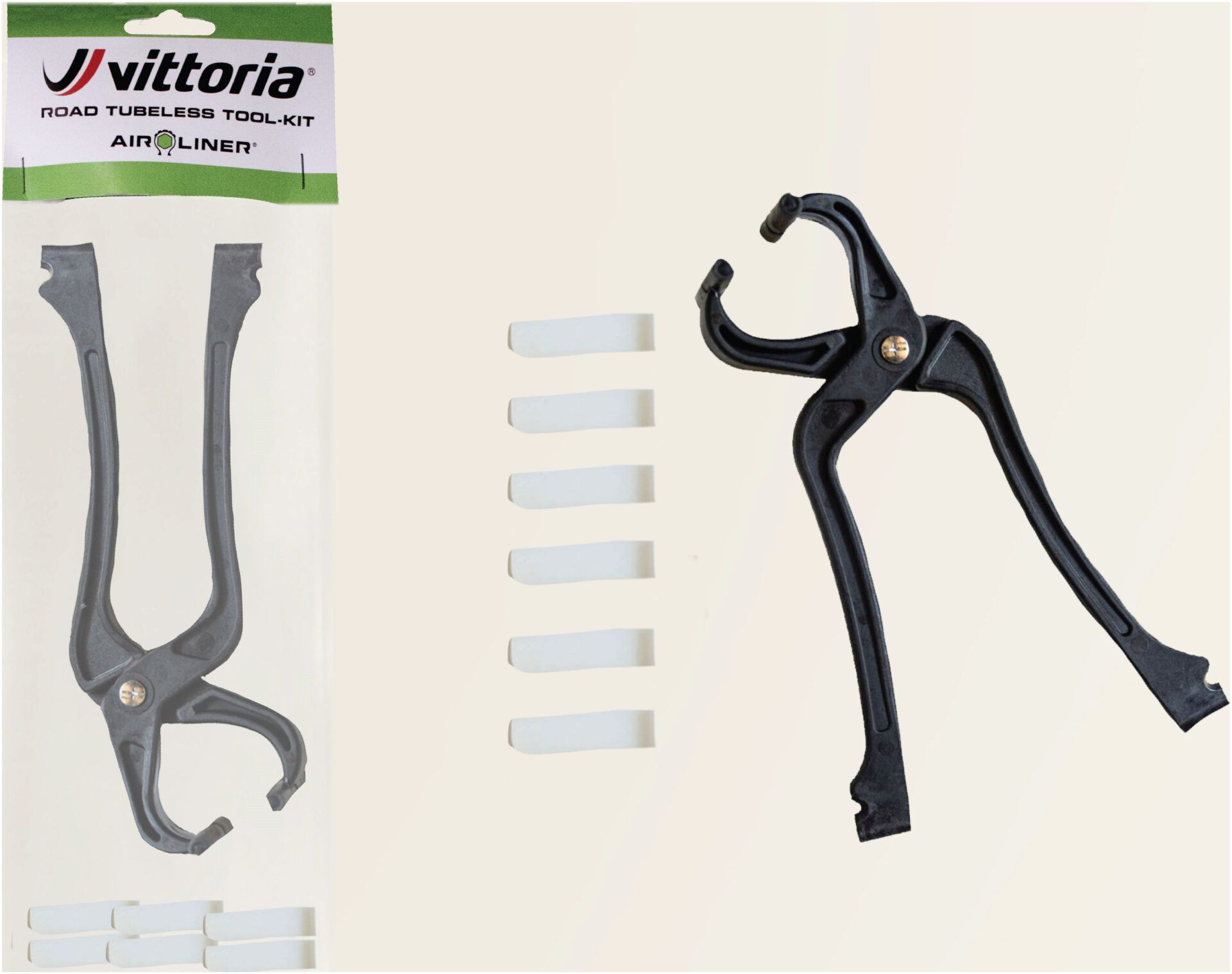 The Air Liner Road Kit is Vittoria's all-in-one package for the best experience on your tubeless tyres. Each kit contains a pair of inserts, 1 set of pliers and 6 clips per package, 80ml sealant and 2 multiway valves, which are specifically designed as integral parts of the mounting and dismounting process. The patented plier design provides a gentle yet secure grip on the tyre, which is needed when removing the tyre bead from the rim. This creates space for the included clips to be inserted between the tyre and rim. Additionally, the handles of the pliers are designed to be used as tyre levers, during mounting and dismounting, and are designed to prevent damage to the rim and tyre. The Vittoria Road Tubeless Tool-Kit is necessary for the Air-Liner Road removal from your wheel. In case of issues, we recommend visiting your trusted bicycle workshop.