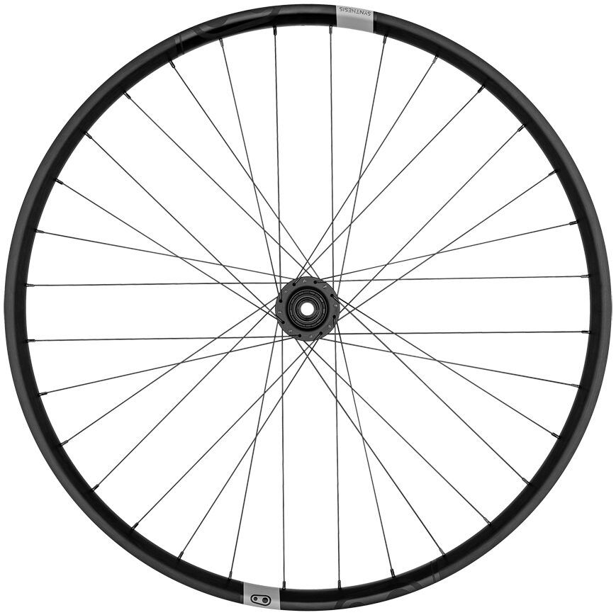 Crankbrothers synthesis wheels take a new approach to wheel systems, focusing on a compliant front wheel with a stiff rear wheel to achieve optimum ride characteristics for each. The compliant front wheel improves handling and control in the turns, while a stiff rear wheel enhances stability and tracking at speed. In the alloy range, these differing characteristics are achieved by variations chosen in spoke tension, spoke weight, spoke count, rim width and rim weight.