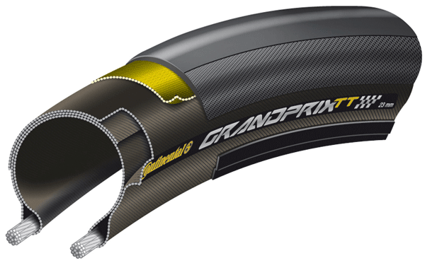 The Grand Prix TT is particularly lightweight thanks to its minimised tread, and is indescribably fast due to the latest Black Chili compound. Composed of BlackChili compound rubber, for superb grip, particularly in the wet. A Vectran breaker adds puncture protection.