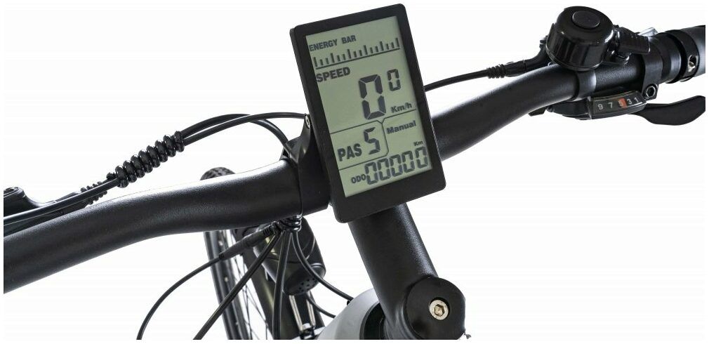 - Display: Centre mounted LCD display, 5 modes, Walk assist, Lights on/off, Battery Indicator, Speed, Average speed, Max speed, Odometer, Trip, Trip Time