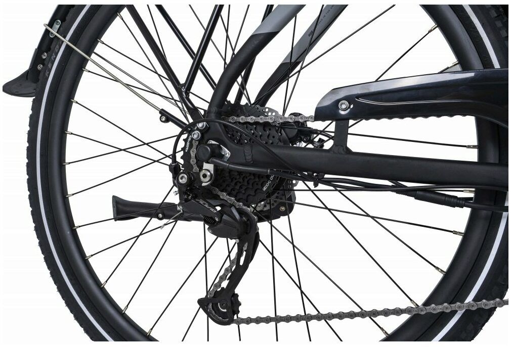 The crossbar frame is equipped with a neatly integrated 540wh battery that can deliver over 60 miles / 97km of assisted pedalling. The power is delivered from within the Bafang rear hub motor, a brand who is quickly establishing themselves as one of the leading bicycle motor brands with excellent build quality, performance, and value for money.