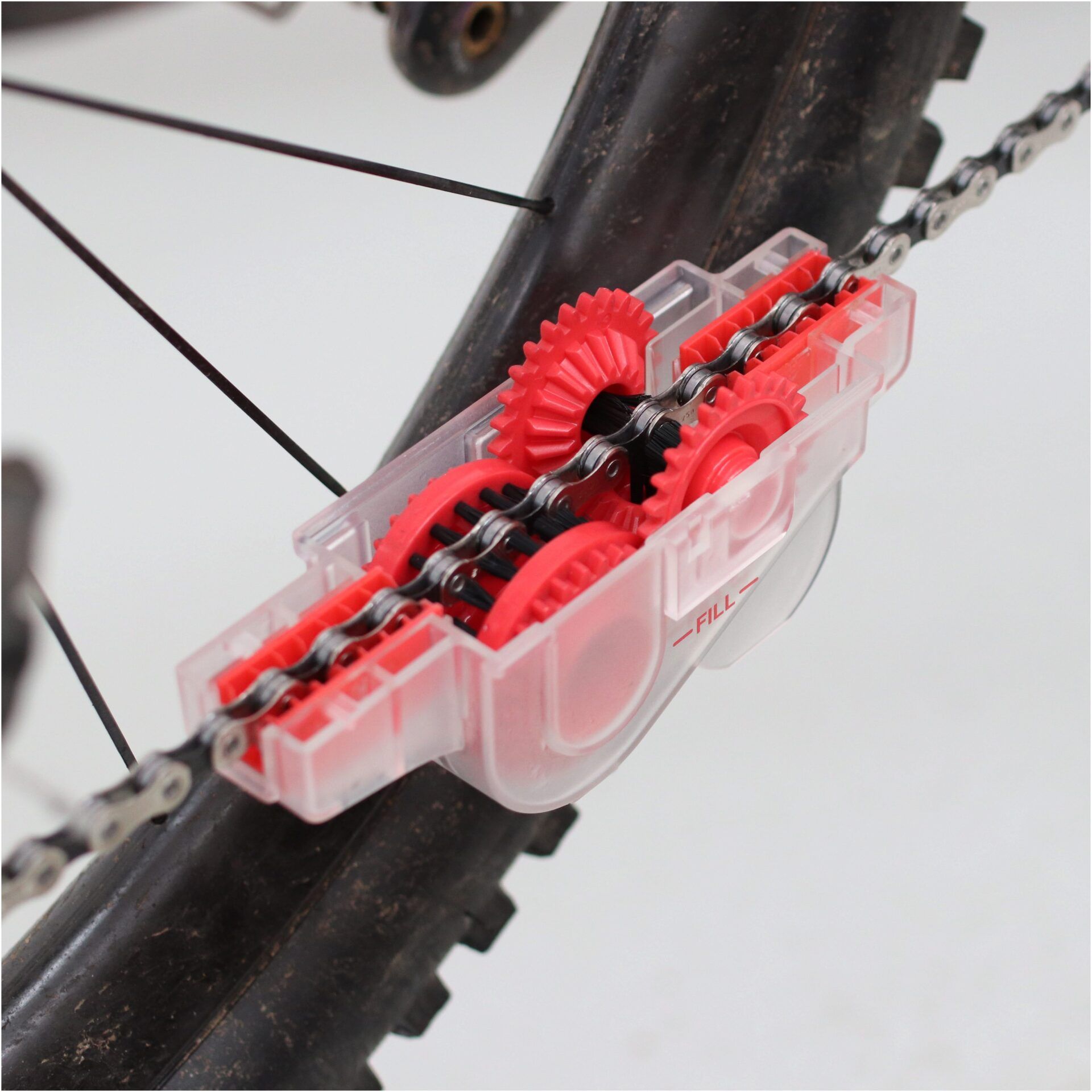For quick and effective chain cleaning without the need to remove the chain from the bike, use a a chain cleaning tool rather than simple brushes.