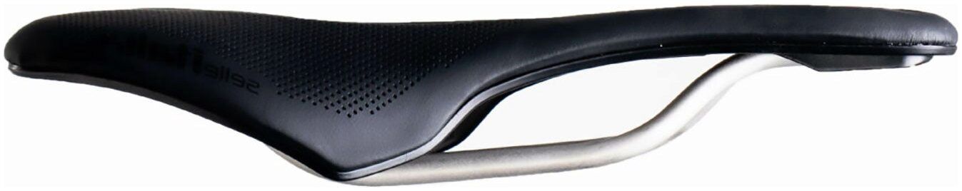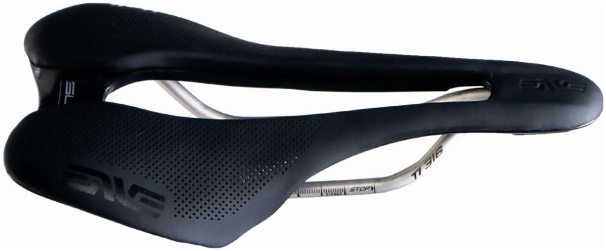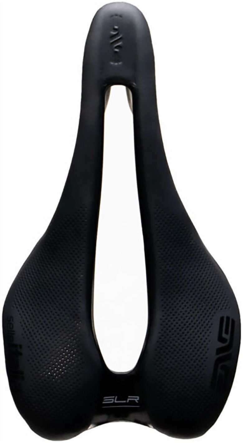 Partnering ENVE, the innovative engineers known for light, strong components, with Selle Italia, an Italian brand with a 120-year history of saddle creation, the ENVE x Selle Italia Boost SLR Saddle will ensure your all-day racing comfort. Available in a choice of widths, with either carbon or titanium rails, this short-nosed saddle bears a cut-out that helps to keep its weight down and flexes the lumbar spine, while the wide SLR shape, conceived with the help of doctors and biomechanics scientists, helps position the pelvis so that the force goes through your strong sit bones, not your delicate soft tissues, as you ride. The saddle is furthermore perforated, to keep you dry and fresh over long miles on the bike, and coated in a soft, polyurethane upper to add a bit of luxury to your ride experience. The carbon rails are lighter than the titanium, but also stiffer and more aggressive, making them capable of absorbing more road vibrations. They're also oblong rather than round, so you'll need to check the fit with your saddle post. The round, hollow titanium rails will be compatible with a greater range of bikes and offer a softer ride but won't absorb vibrations as well as the carbon. Whichever width or rail you go with, rest assured that your saddle will be super light and has been designed to let you adopt an aggressive race stance for longer, while staying comfortable and avoiding strains.
