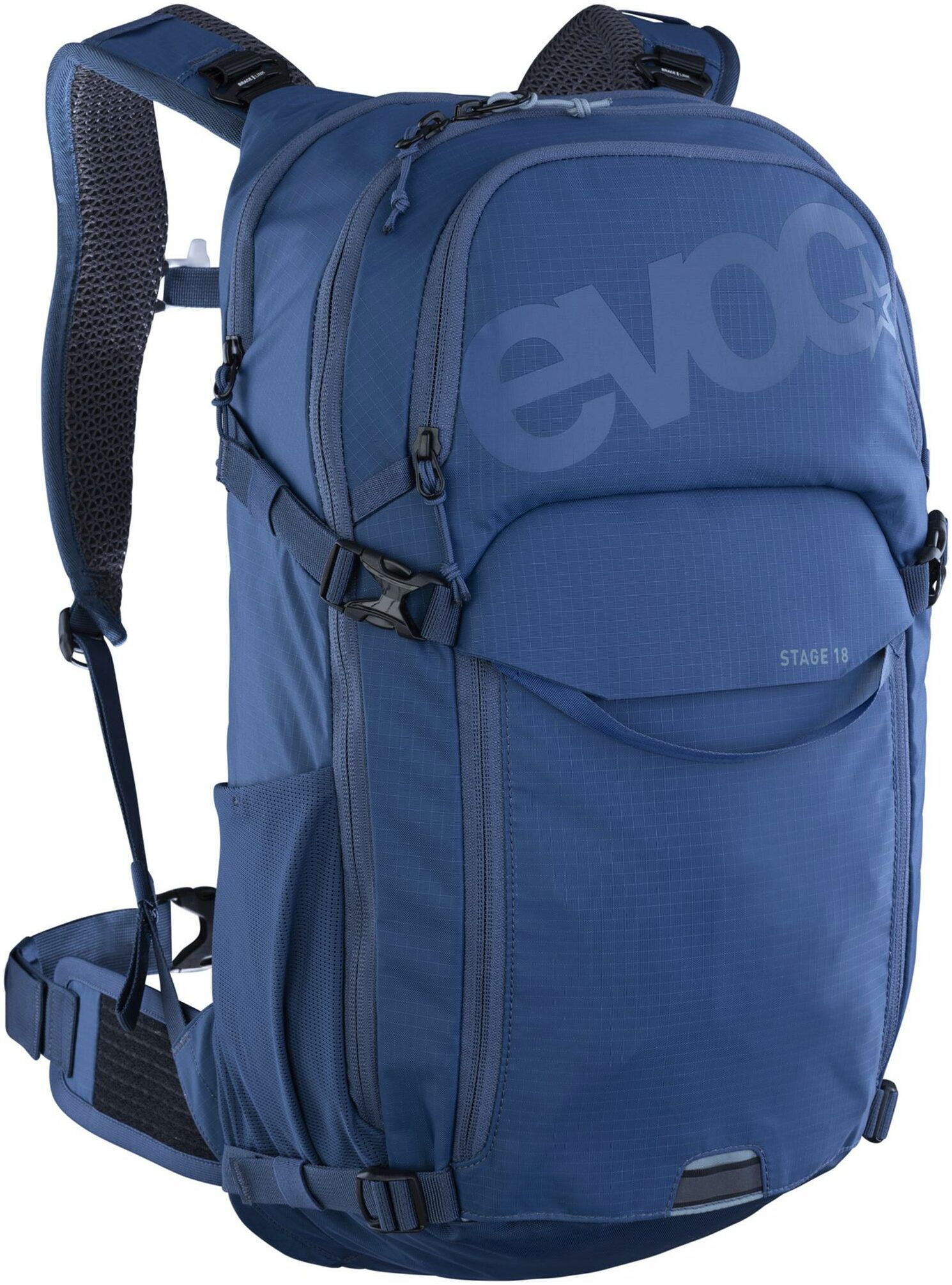 The new Stage 18 is a versatile MTB backpack for everything needed on demanding tours – while hardly noticing it on your back thanks to its first-class fit and thus plenty of freedom of movement! The updated Air Flow Contact System enables ideal weight distribution and makes overheating one less issue thanks to its unique ventilation concept with wide ventilation channels and wide-meshed back material. The pack with a quick access tool compartment, hydration system compartment and sunglass pocket fits super close to the body to avoid sketchy load shifts, so you can concentrate fully on the trail. Practical straps additionally support compressing your gear.