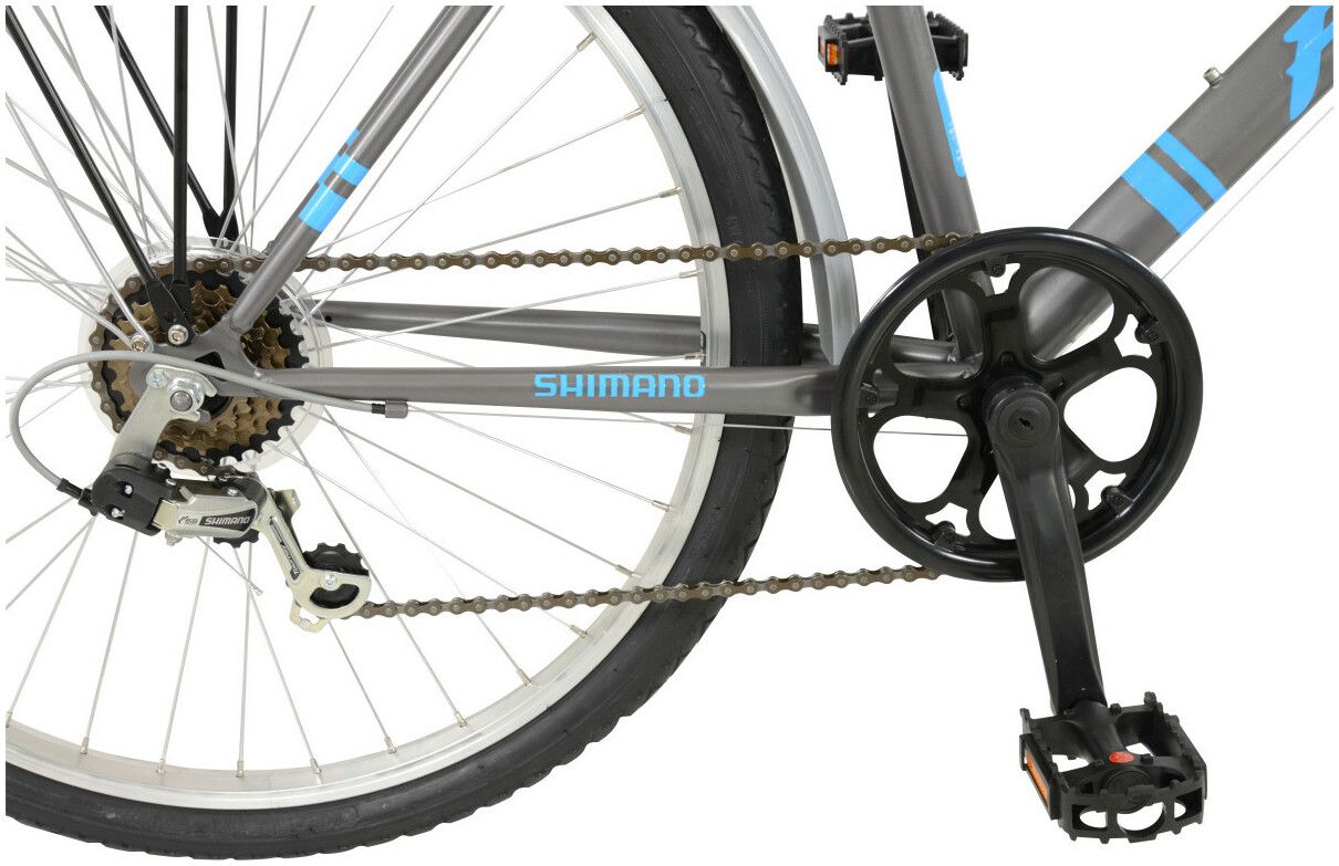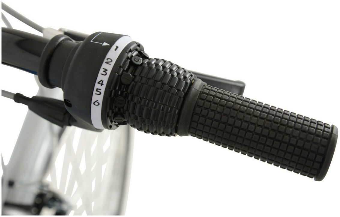 Smooth rolling tyres ensure your ride is comfortable whilst providing good grip to keep you moving in the right direction. The deep section alloy wheels are both strong and lightweight. Easy to use indexed 6-speed gearing is provided courtesy of the single-handed grip-shift and a Shimano rear derailleur to supply reliable and smooth gear shifting and to help you tackle all but the steepest of hills.