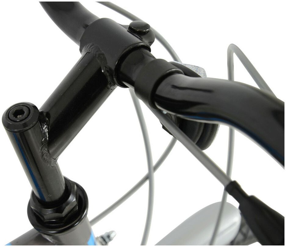 - Soft-compound handlebar grips for a pleasurable and re-assuring ride and wide hi-rise handle bars for comfort and control.