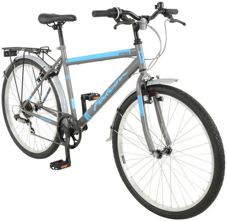 The stunning new Falcon Explorer is a great Mens Hybrid bike with 26" tyres for a smooth more mountain bike style ride. The Explorer has a traditional steel Hybrid frame, forks and wider 26" semi slick tyres for a more comfortable relaxed and enjoyable ride on rough terrain