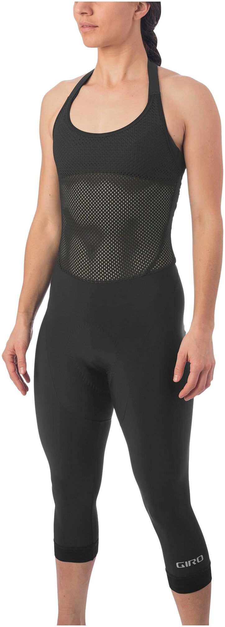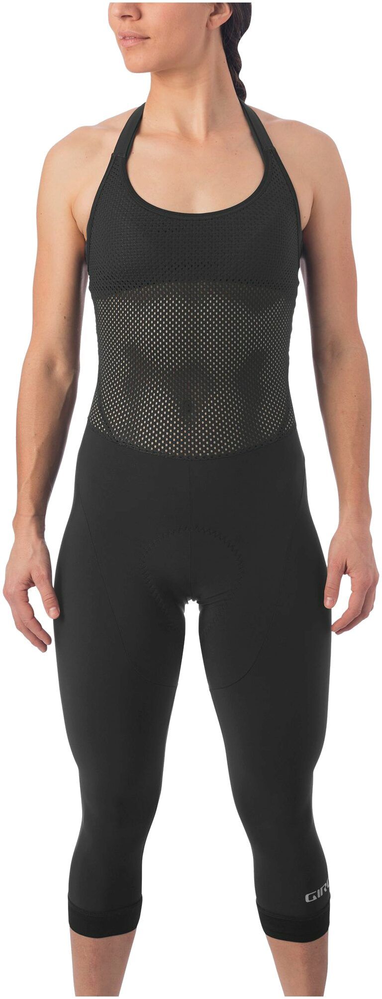 Enjoy the yoga legging style and the convenience of an easy-to-remove design with the Women's Chrono Expert Halter Bib Knicker. Whether you are looking for a flattering fit like your favorite pair of yoga tights or extra coverage on cooler days, knicker-length bib shorts are the perfect solution. But bibs can be a challenge when nature calls. So Giro has expanded on the popularity of Giro's Chrono Expert Halter Bib design by offering a knicker-length option (And you still don't have to be Houdini when you need to make a stop). Giro use premium Italian fabrics from Giro's Renew Series to reduce impact on the planet while maintaining optimal performance and great compression for muscles, while a fantastic Chrono Expert Elastic Interface Renew Series chamois ensures comfort and stability in the saddle. The fit is engineered so that the entire garment works to support your body in motion.