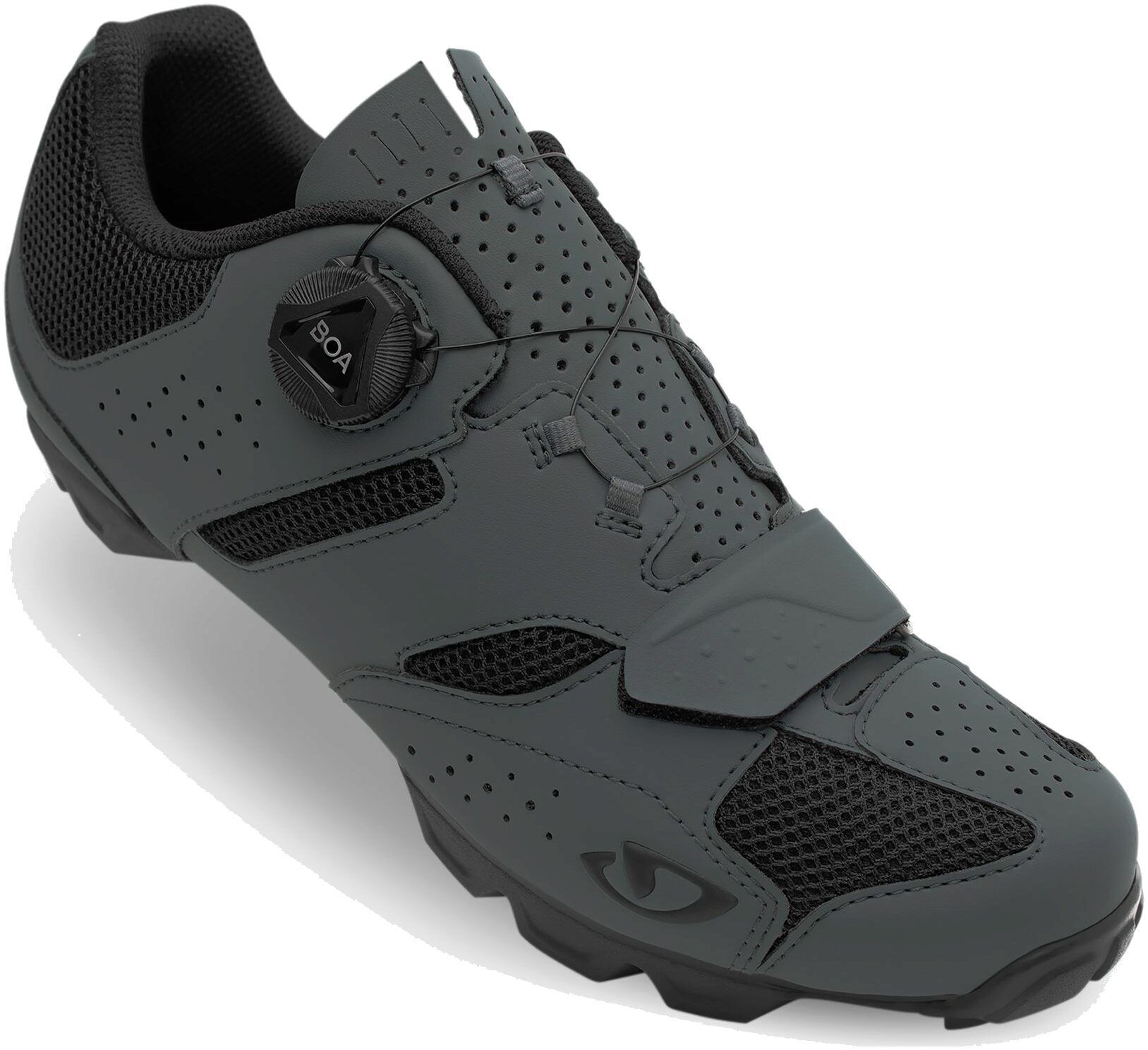 The Cylinder II mountain bike shoe offers the comfort you'd expect from Giro with the convenience and precision of a BOA dial closure. With a single dial and a set-and-forget front strap, you can get into your shoes and onto the trails in no time. The BOA L6 dial offers 1mm adjustment increments when tightening, and a macro-release function to get out of the shoe. The upper construction provides great support and breathability, while Giro's proprietary co-molded nylon and rubber lugged outsole provides remarkable durability with reliable traction on almost any surface.