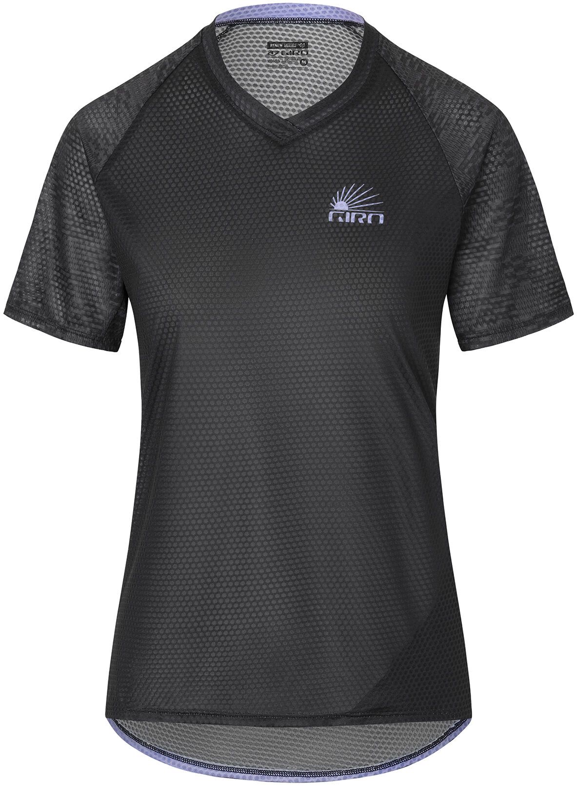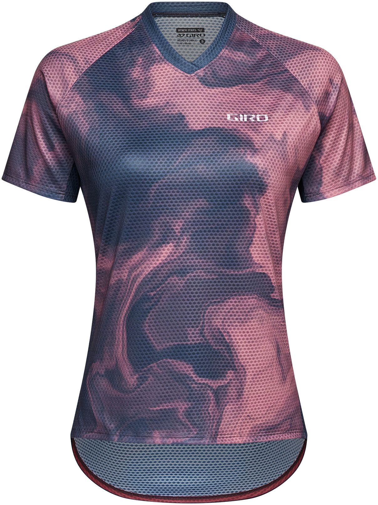 The Women's Roust Jersey features lightweight, breathable construction with short sleeves for warm-weather days or anytime you want a jersey that feels like it disappears. The moisture-wicking, Renew Series recycled polyester fabric is combined with mesh back and side panels to keep you dry and cool, and features an interior lens wipe for a quick and easy way clean your goggles or glasses. The fit is relaxed for a stylish, comfortable feel, with sleeves that hit above the elbow for compatibility with pads. That's why it's Giro's favorite jersey for long summer days on the trail.