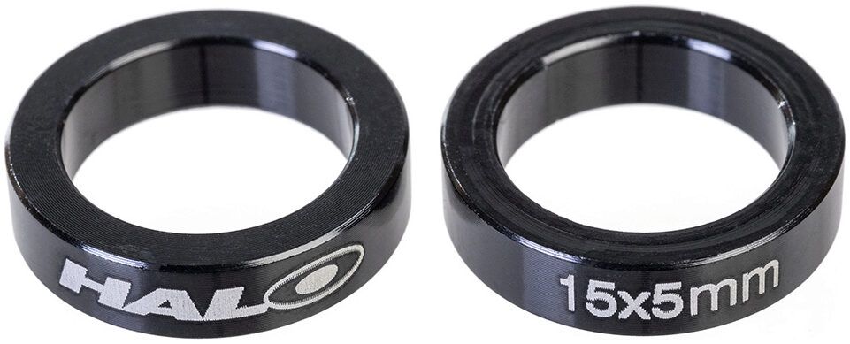 These simple, 5mm lightweight aluminium spacers are designed to fit onto Thru-type hub axles to enable regular 100mm spaced hubs to fit into 110mm (Boost) type spaced fork thru-axle dropouts. (1 x 5mm spacer added each side = 10mm)
