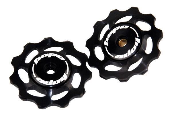 Hope Jockeys wheels are a great upgrade for those keen to optimise their drivetrain. Super smooth bearings reduce drag and help keep things running like clockwork. Machined from high quality 2014T6 aluminium, these jockey wheels are lightweight yet durable. Fits Shimano rear mechs.