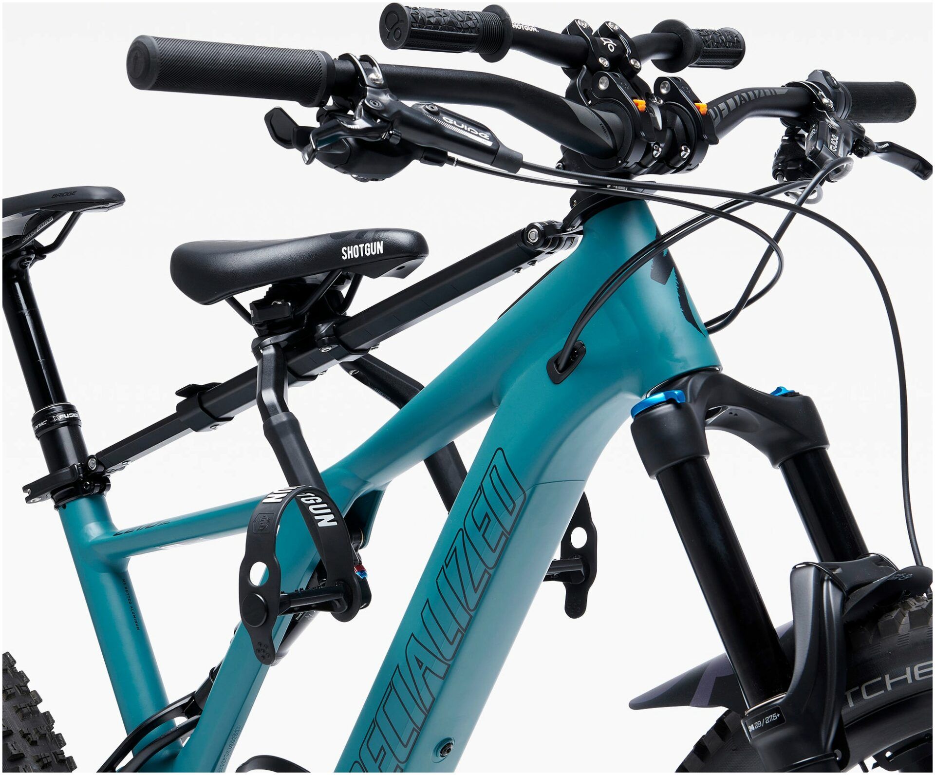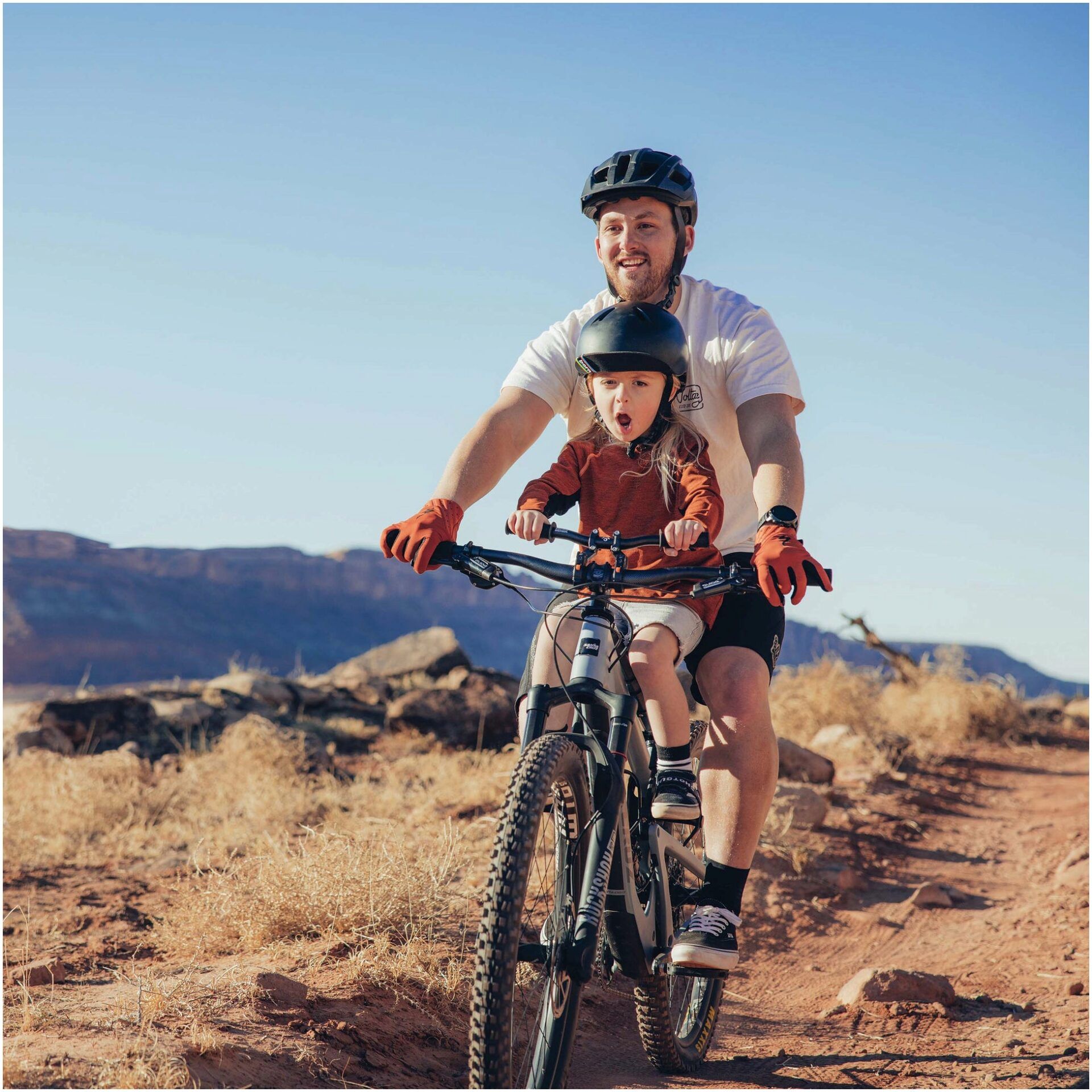 The Shotgun Pro combo is the ultimate setup for your mountain bike kid. Lightning fast to attach and remove, zero frame contact and adjustable to fit electric & regular mountain bikes. With the Pro handlebars included, your little one is going to love hitting the trails riding up front.
