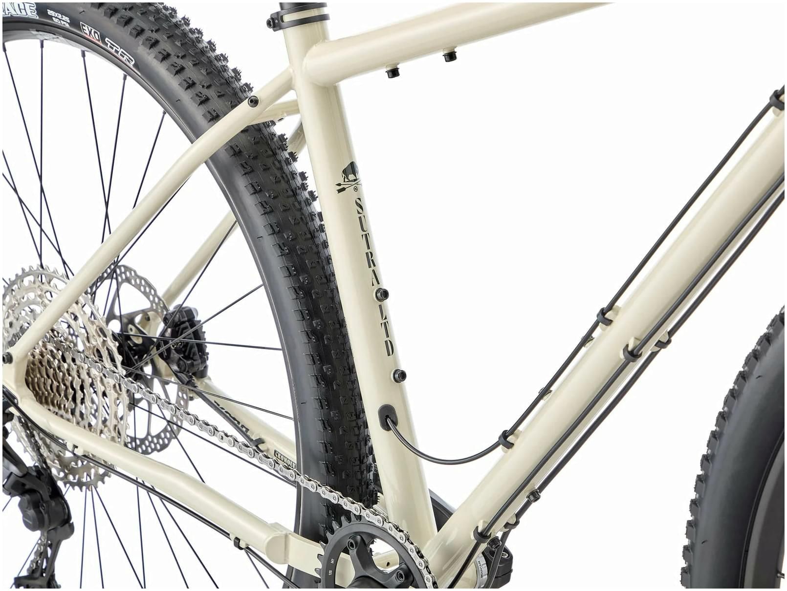 - Massive tyre clearance means you can run up to a 29x2.25" tyre. The Sutra LTD comes with 2.25" Maxxis Rekon Race tires