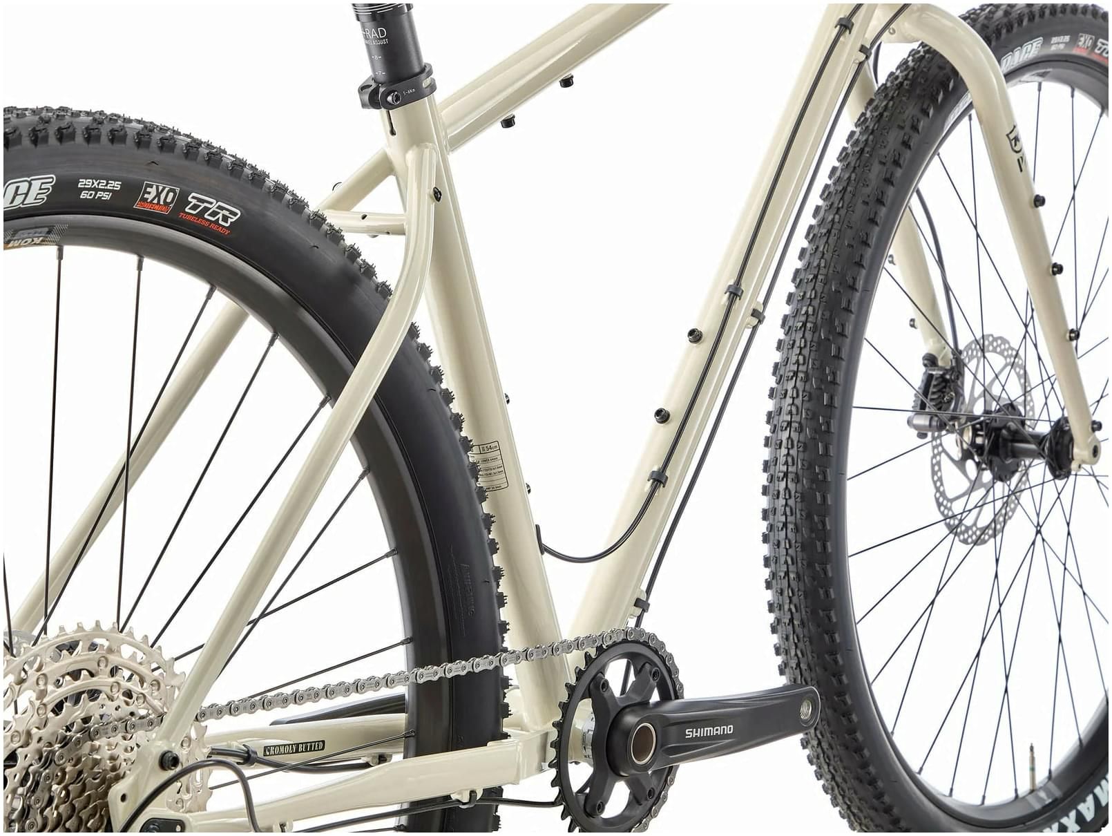 - Two sets of water bottle bosses under the top tube are perfect for mounting custom frame bags