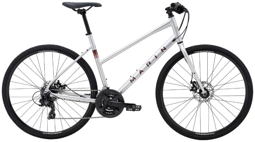 The Fairfax 1 is the most affordable in the collection. Named “Best Hybrid” many years running by Wirecutter it’s built around a lightweight Series 1 aluminum frame and a sturdy CrMo fork and comes with a 3x7-speed Shimano drivetrain, Clark’s mechanical disc brakes and plenty of reliable Marin components.