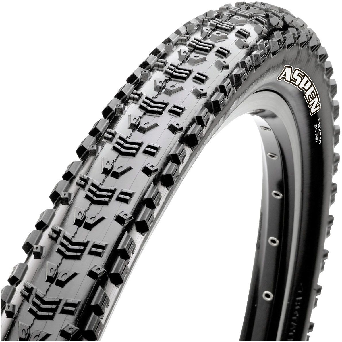 The Maxxis Aspen is one of our premier XC race tires. A low center tread height allows the Aspen to roll quickly but substantial – for XC – side knobs provide cornering traction.
