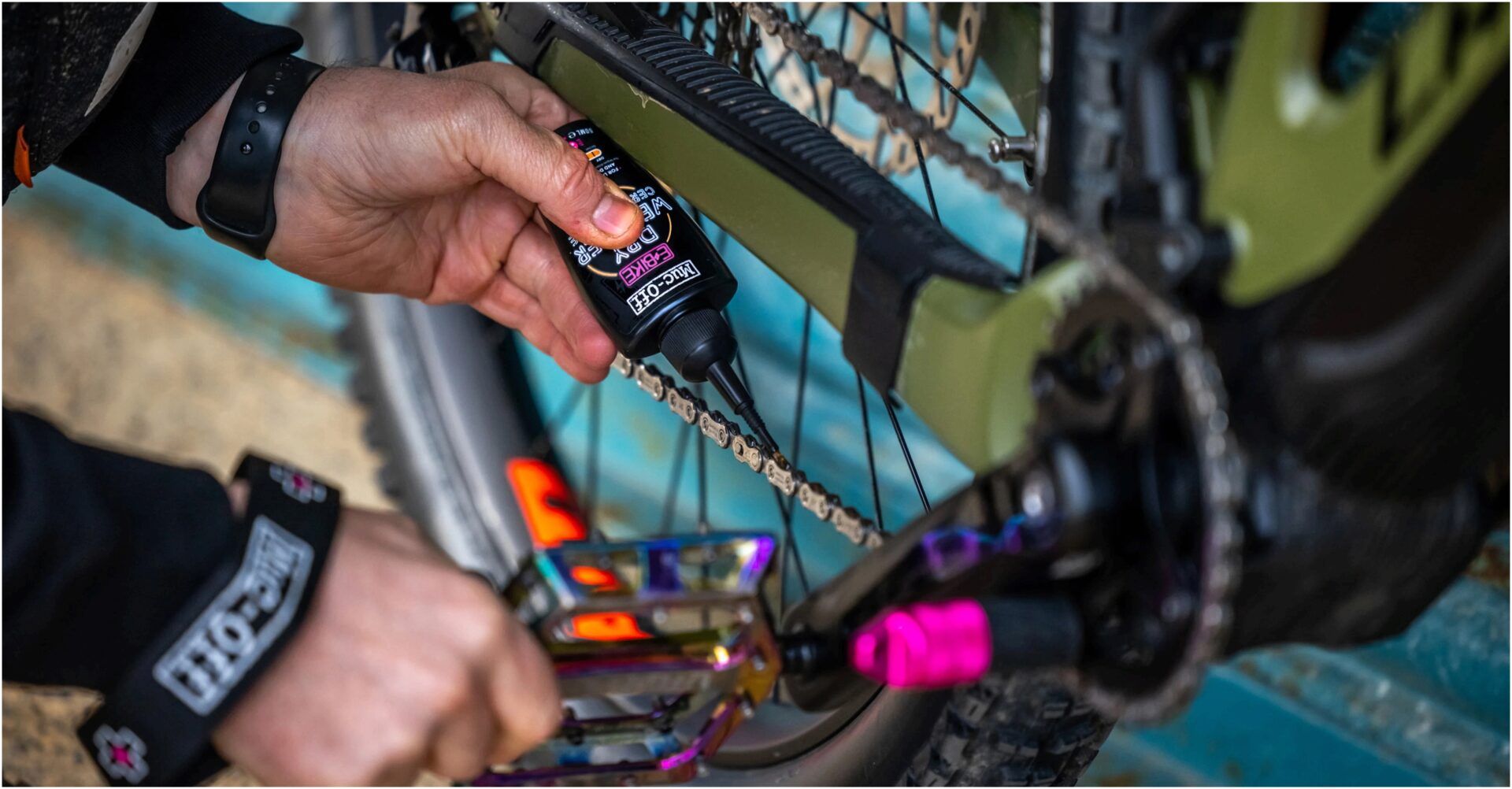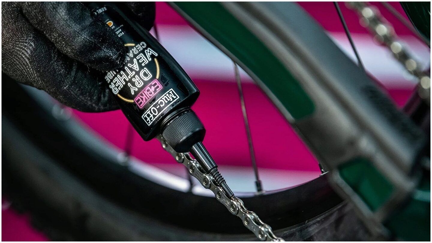 Muc-Off's E-Bike Dry Lube has been specifically designed to cope with the higher torque loads applied to an electric bike drivetrain.