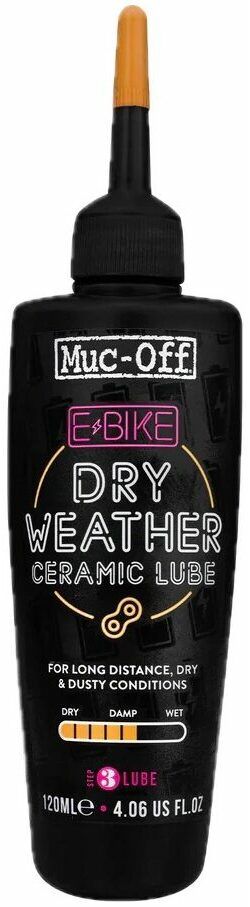 A proprietary ceramic formulation containing integral Boron Nitride compounds for low friction in dry and dusty conditions. Formulated with Muc-Off's unique E-Bike specific lubricity pack to handle the higher torque loads of an E-Bike drivetrain. Ideal for: Chains, cables, shifters, derailleurs & pedals.