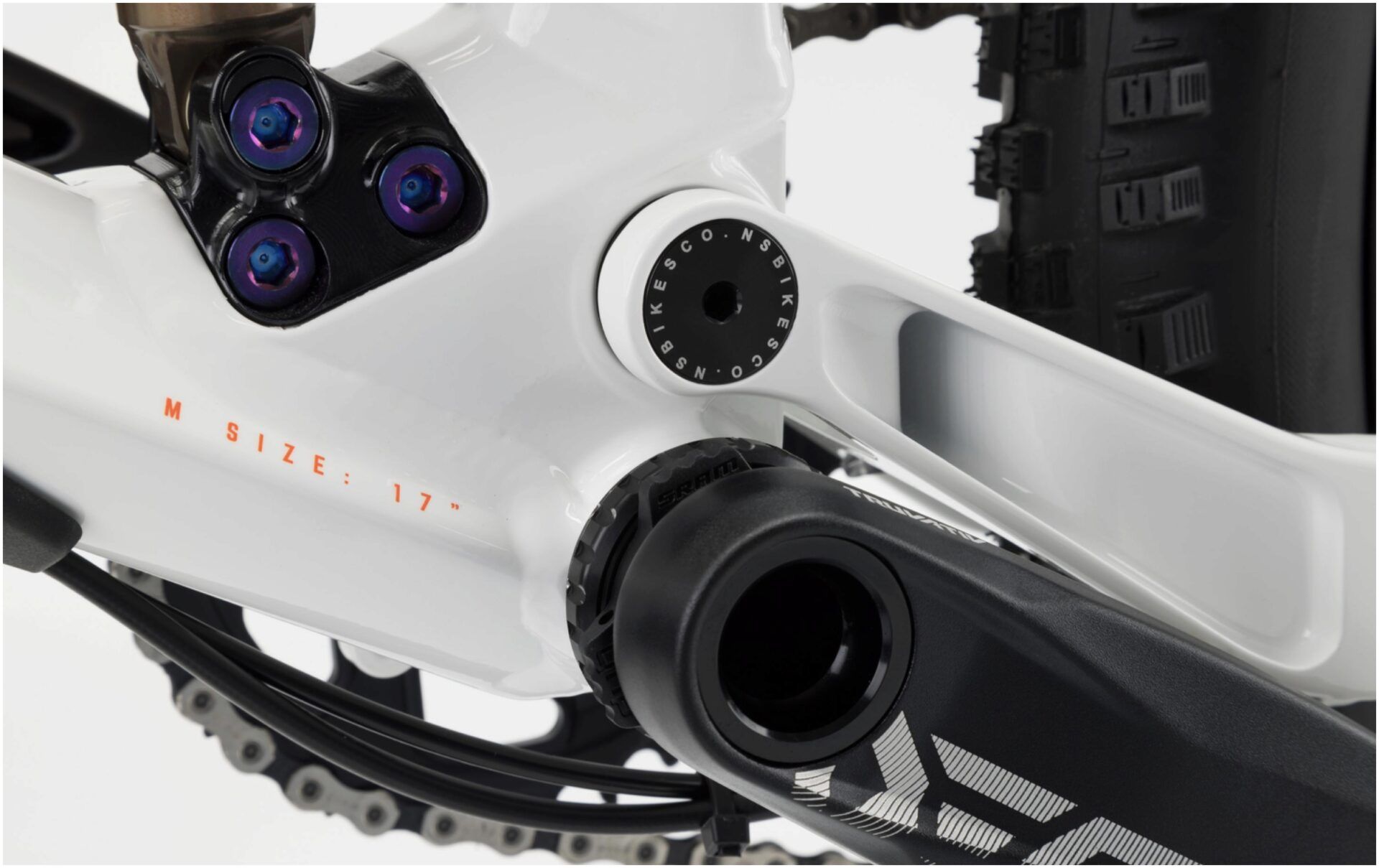 - Headset: NS Bikes custom tapered IS42/IS52 reach adjustable offset cups (+/-10mm), sealed bearings