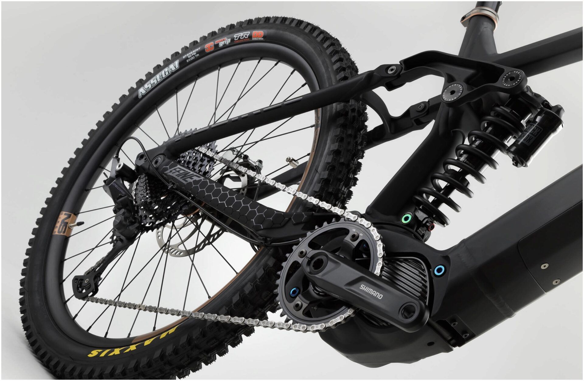 - Rear Tyre: Maxxis Assegai MaxxGrip 3C DD TR 27.5 x 2.50"