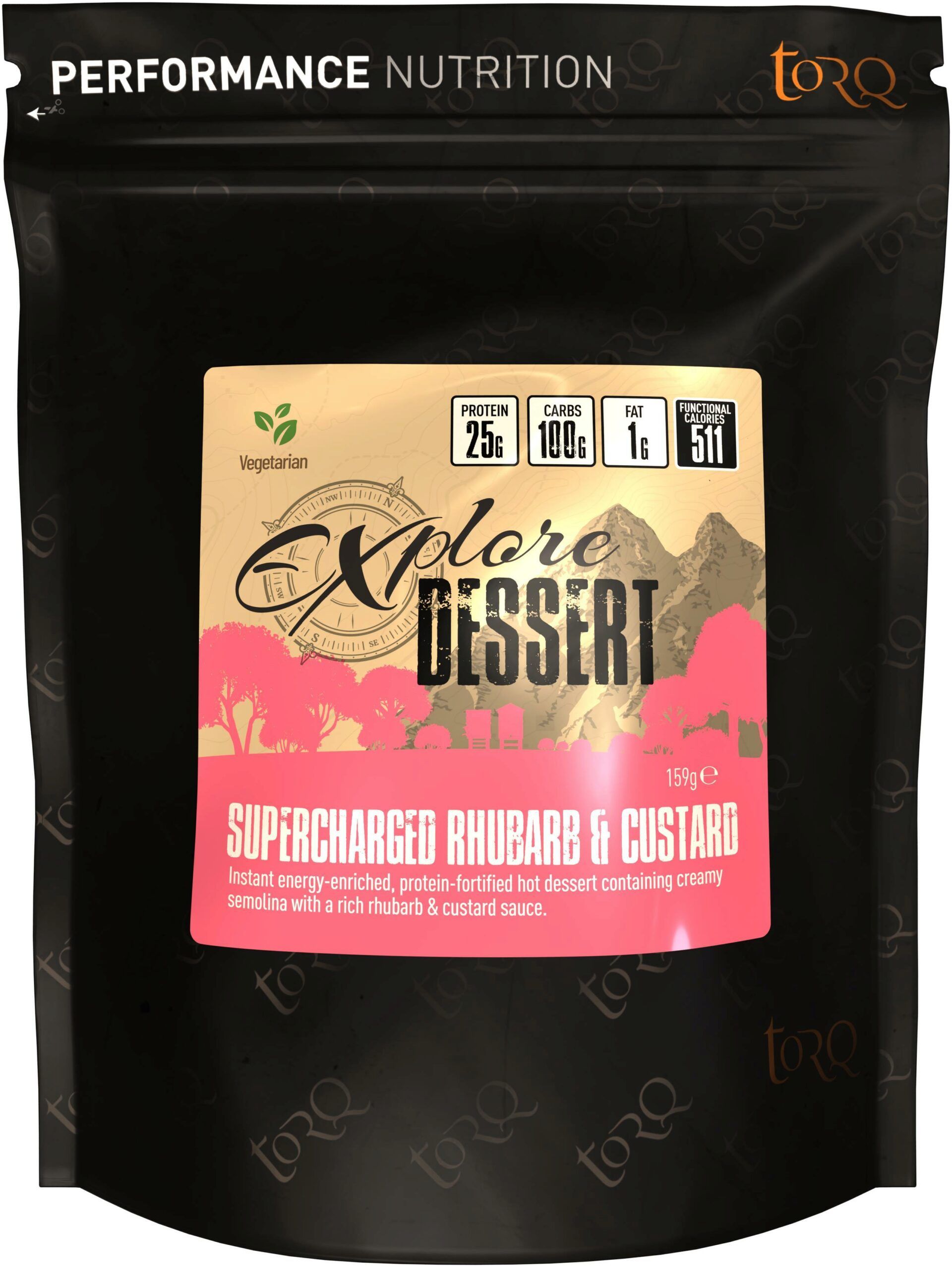 Ingredients: Skimmed Milk Powder, Semolina (Durum Wheat Semolina) (33%), Rhubarb & Custard Sauce: TORQ Gel (Maltodextrin, Water, Fructose, Electrolytes (Sodium Chloride, Calcium Lactate, Potassium Chloride, Magnesium Carbonate), Acidifier: Citric Acid, Natural Flavouring, Preservative: Potassium Sorbate) (28%), Sugar, Maltodextrin.