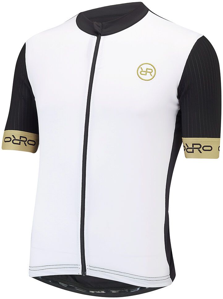 Our new Gold Tec Jersey has been designed with more of a 'Racing fit' than the Gold Luxe jersey. With performance in mind, this jersey is light, fast and will keep you riding at your peak in hot conditions. We have added 3 stretch pockets to the back of the jersey with a reflective stripe plus an extra waterproof zipped pocket for mobiles. Two embroidered logos are present on the chest and back adding a further touch of luxury.