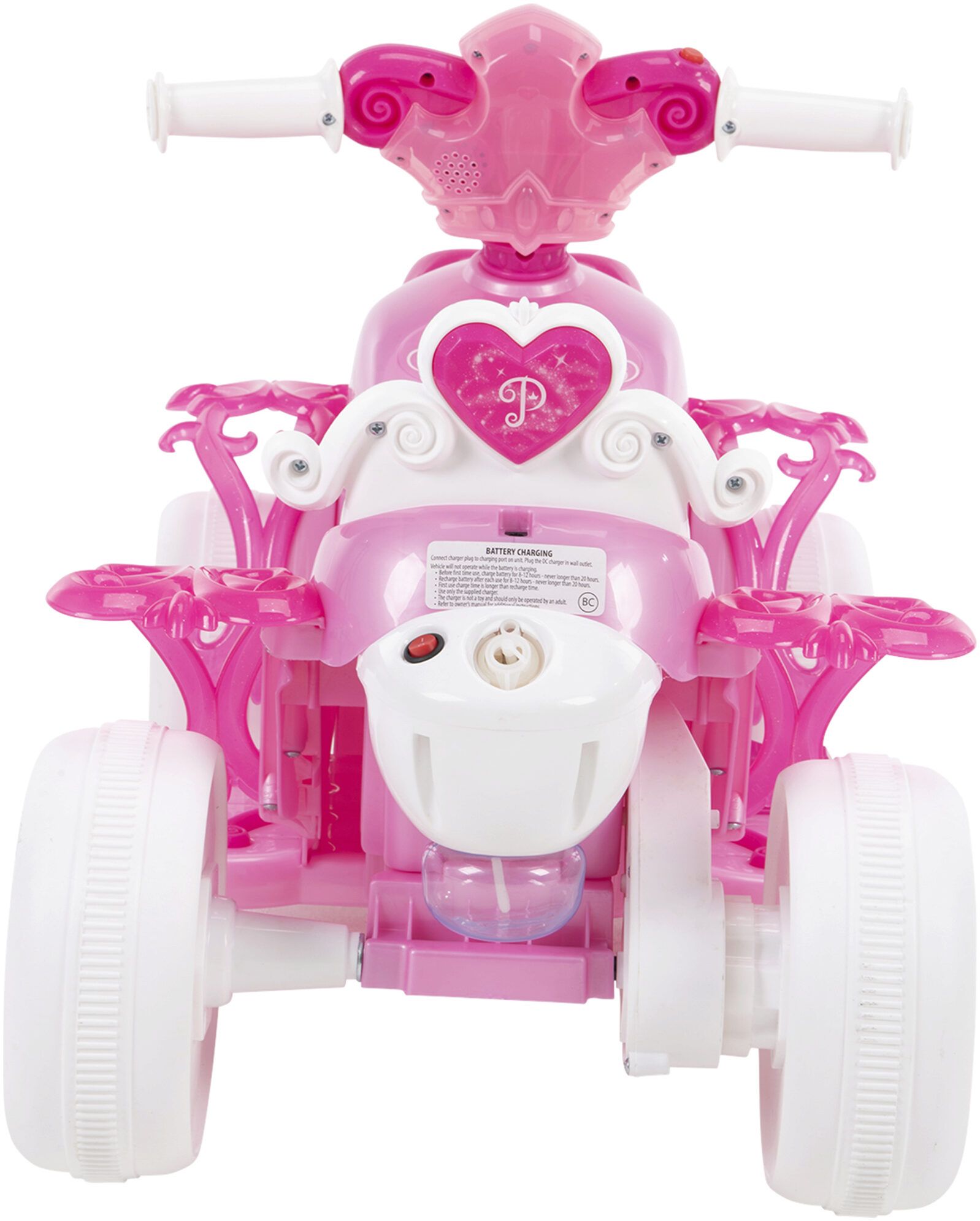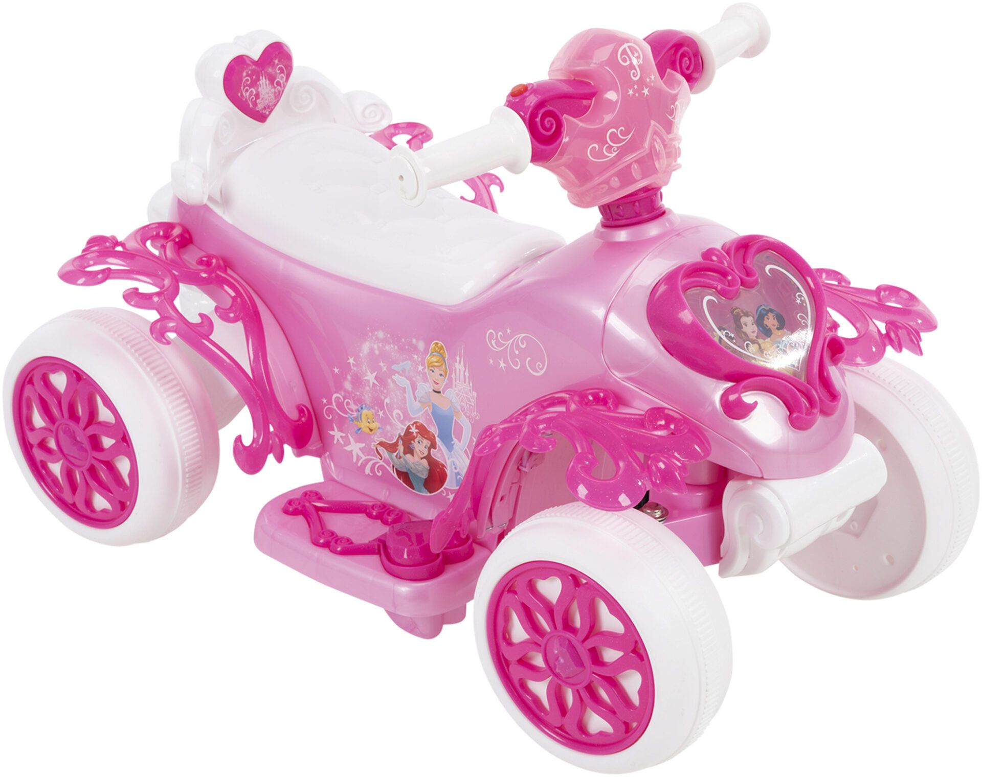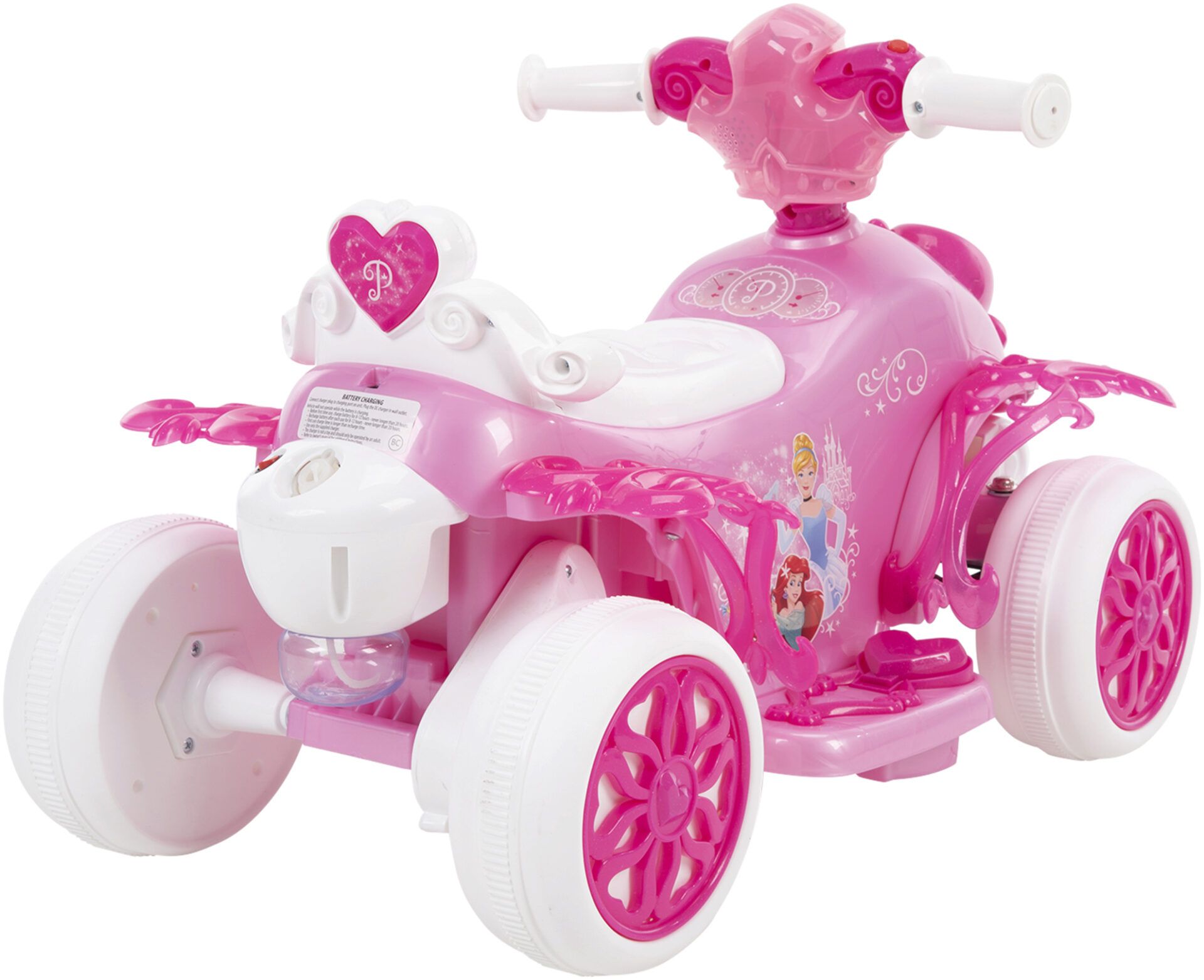 The Disney Princess Electric Ride-On Quad with Bubble Action Exhaust in Pink by Huffy is the perfect ride-on toy for your little princess. This 6V ride-on is designed for children aged 1.5 to 3 years and features a foot throttle for easy start-up. As soon as your child presses down on the throttle, the adventure begins!