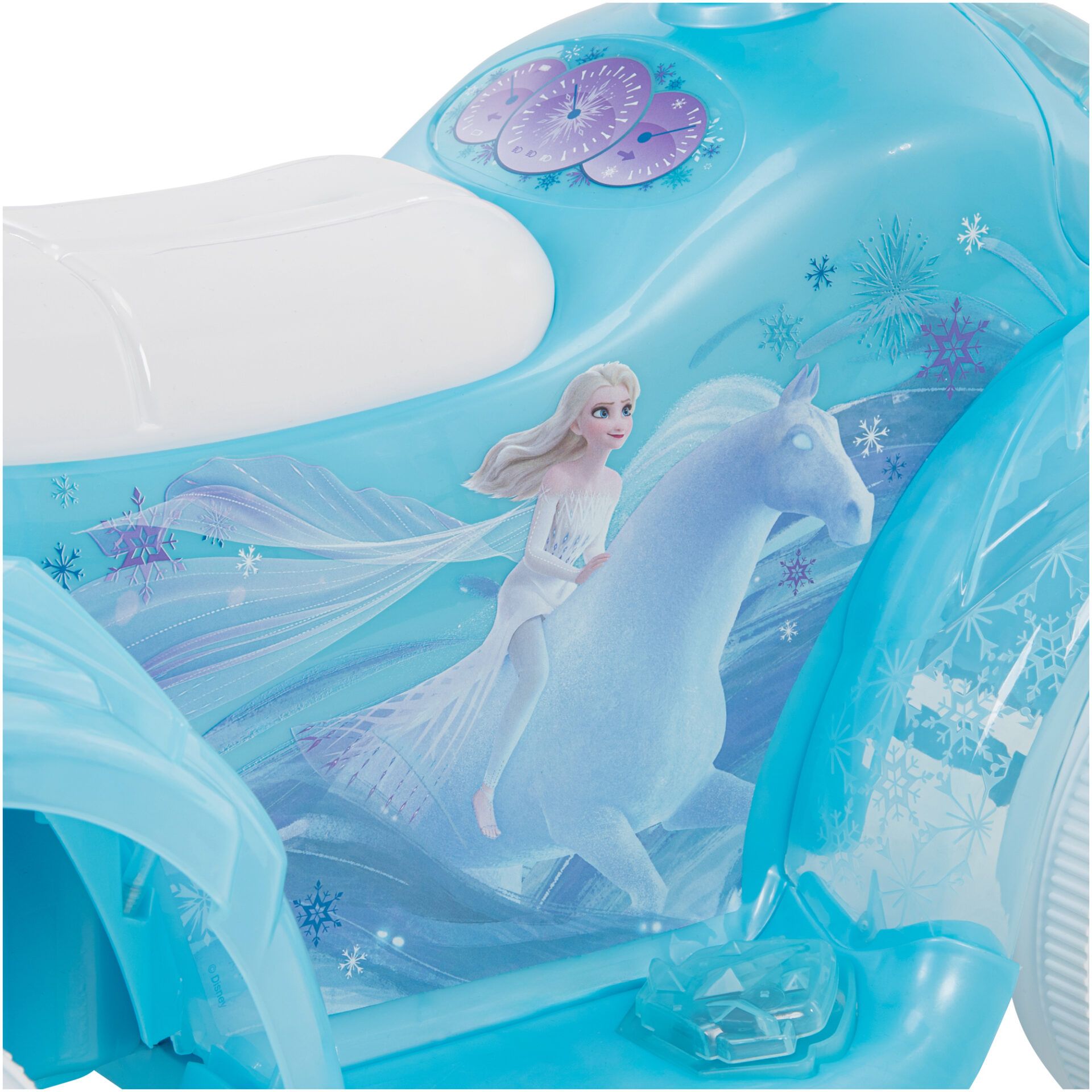 The Frozen Electric Ride-On Quad with Bubble Action Exhaust in Pink by Huffy is the perfect ride-on toy for your little princess. This 6V ride-on is designed for children aged 1.5 to 3 years and features a foot throttle for easy start-up. As soon as your child presses down on the throttle, the adventure begins!