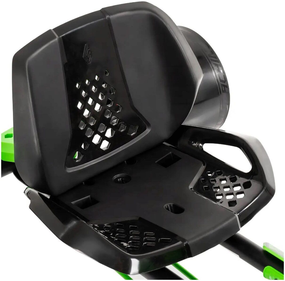 • Seat: Comfortable redesigned saddle with tool-free adjustability in 2 sizes, ensuring rider security during spins and drifts.