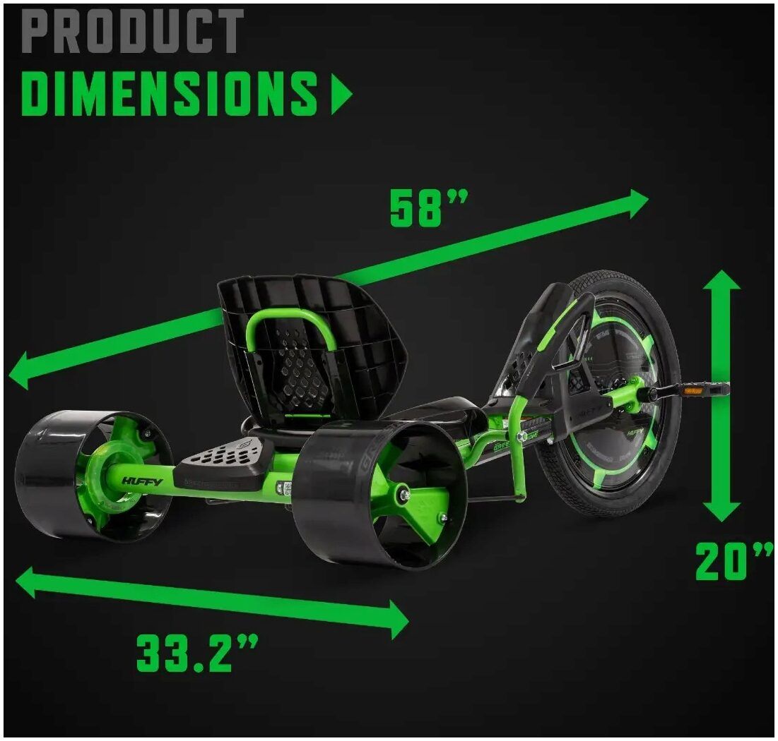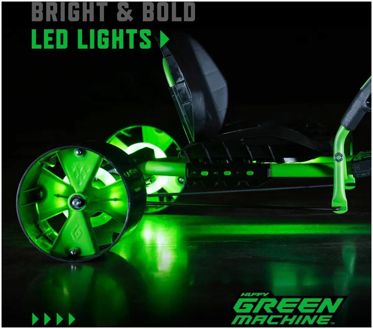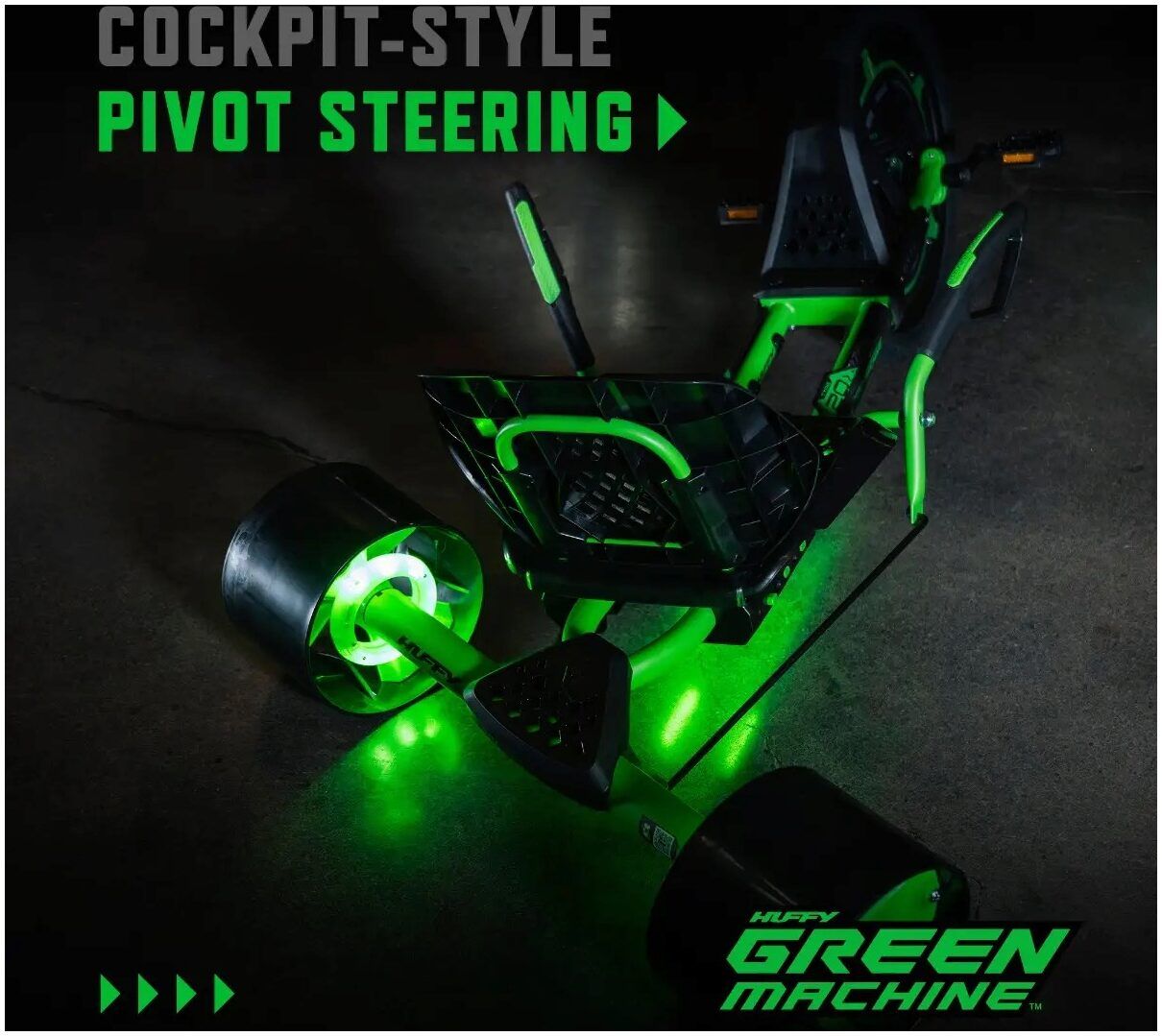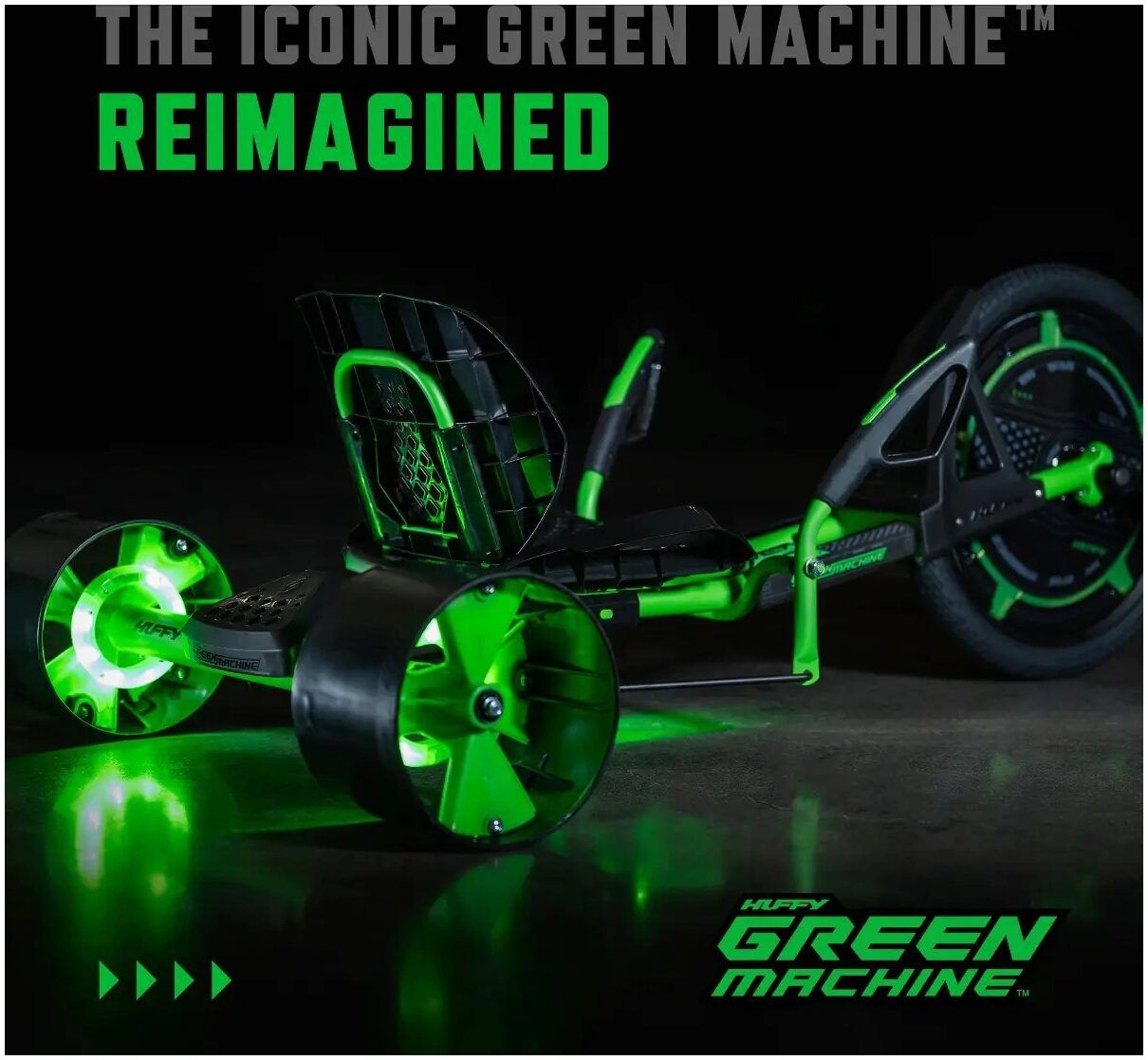 The iconic Huffy Green Machine has been reimagined to give you more fun and thrills from the first pedal. Boasting an all-new seat design, LED lights, injection-molded rear wheels and more, the 20-inch Green Machine offers an exhilarating ride every time.