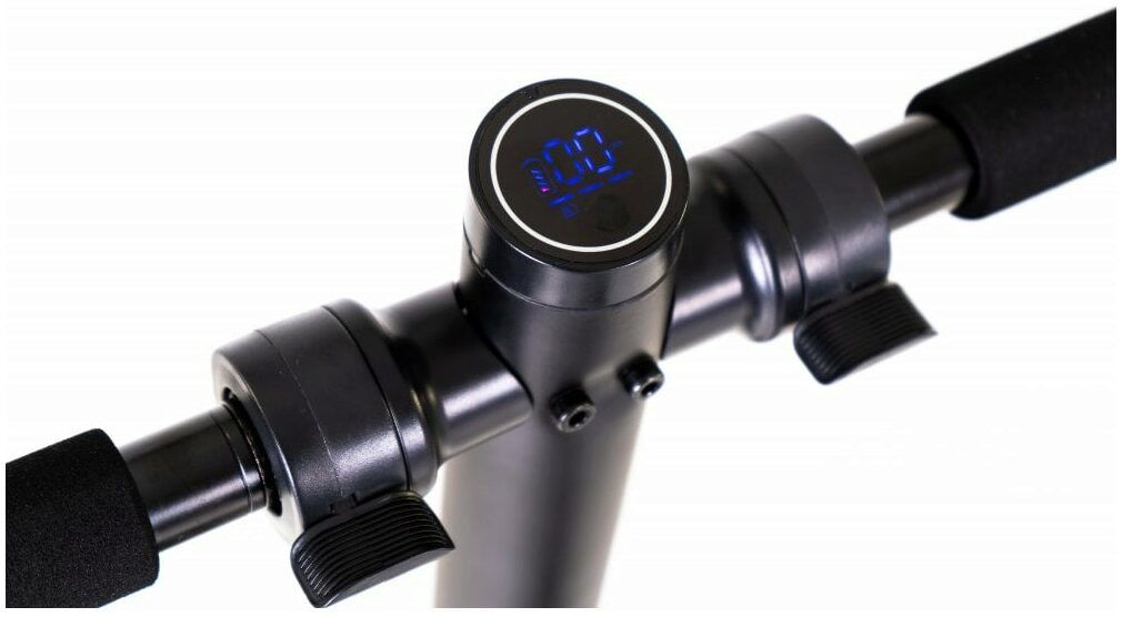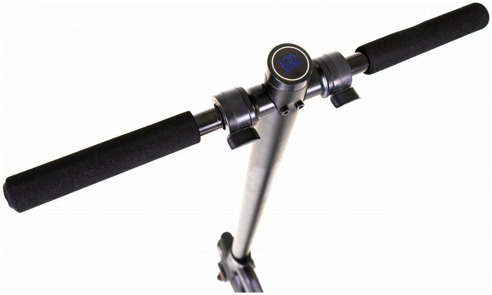 The LCD display is mounted at the centre of the handlebars and is super bright, and from it you can choose between three speed settings, view the current speed and even the battery life. To finish it off we’ve fitted skateboard style grips to the deck, foam comfort grips and a handy kickstand.