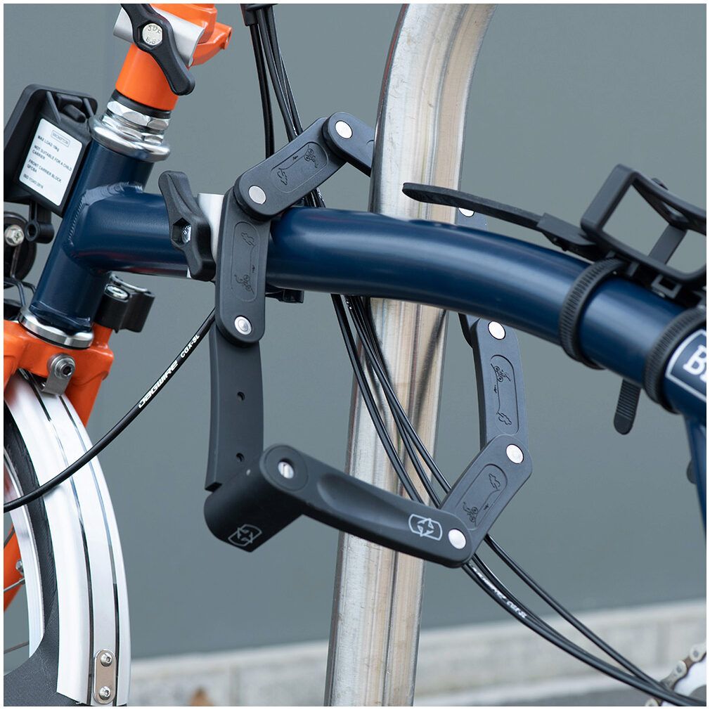 With its compact multi-link folding design and unique carry bracket the problems of carrying locks on your bike or in a bag are over. The LinkLock is 720mm long, meaning there is plenty of length to attach bikes to an immovable object, yet easily folds down into a compact bracket. The carry bracket can be either bolted to the bottle cage mounts or secured to the frame tubing with the rubberised straps included.