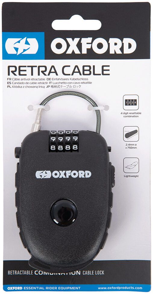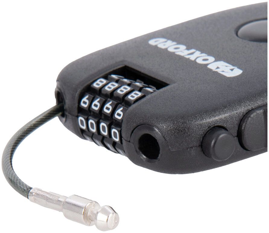 The Oxford Retra retractable combination cable lock is perfect for quickly securing accessories.