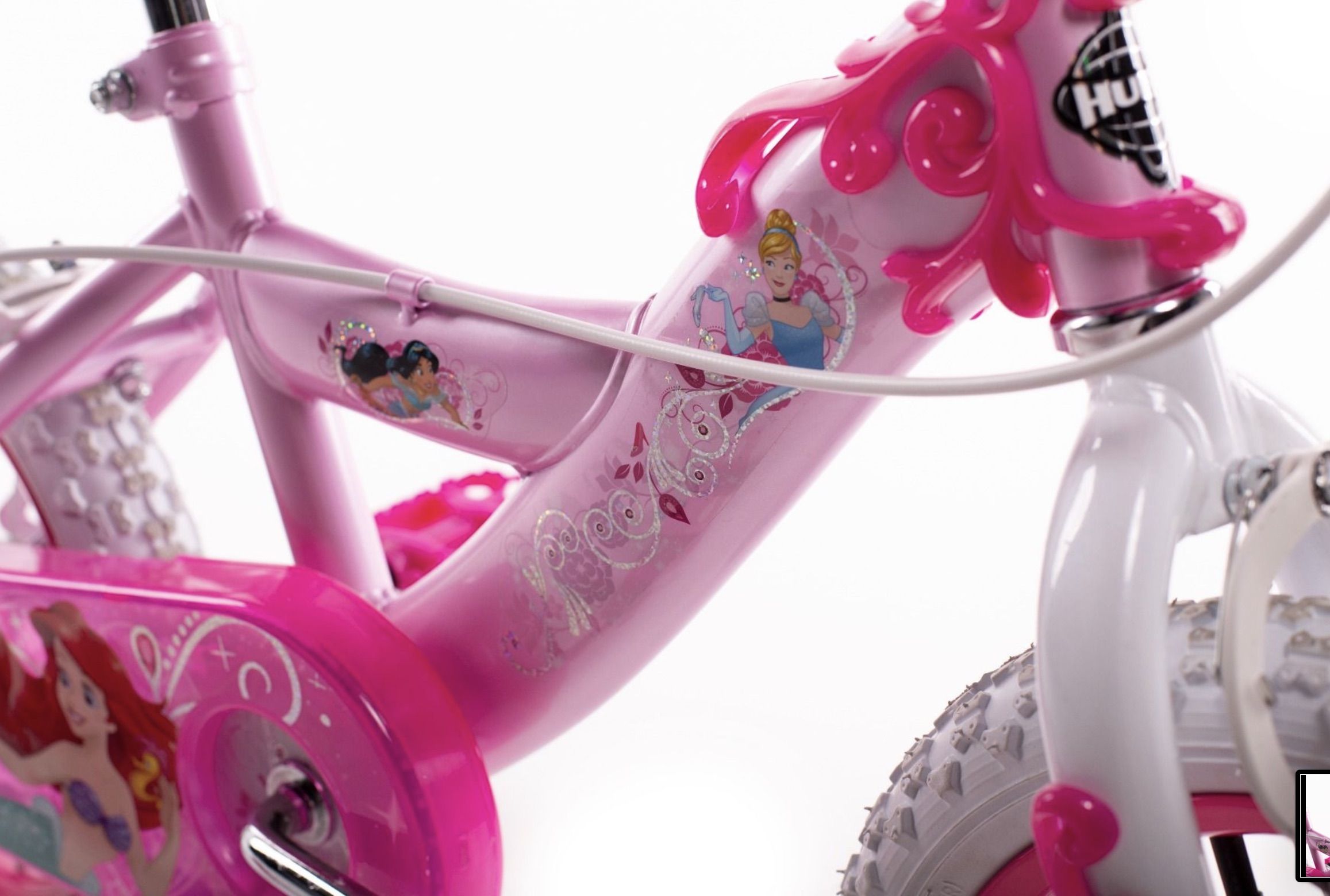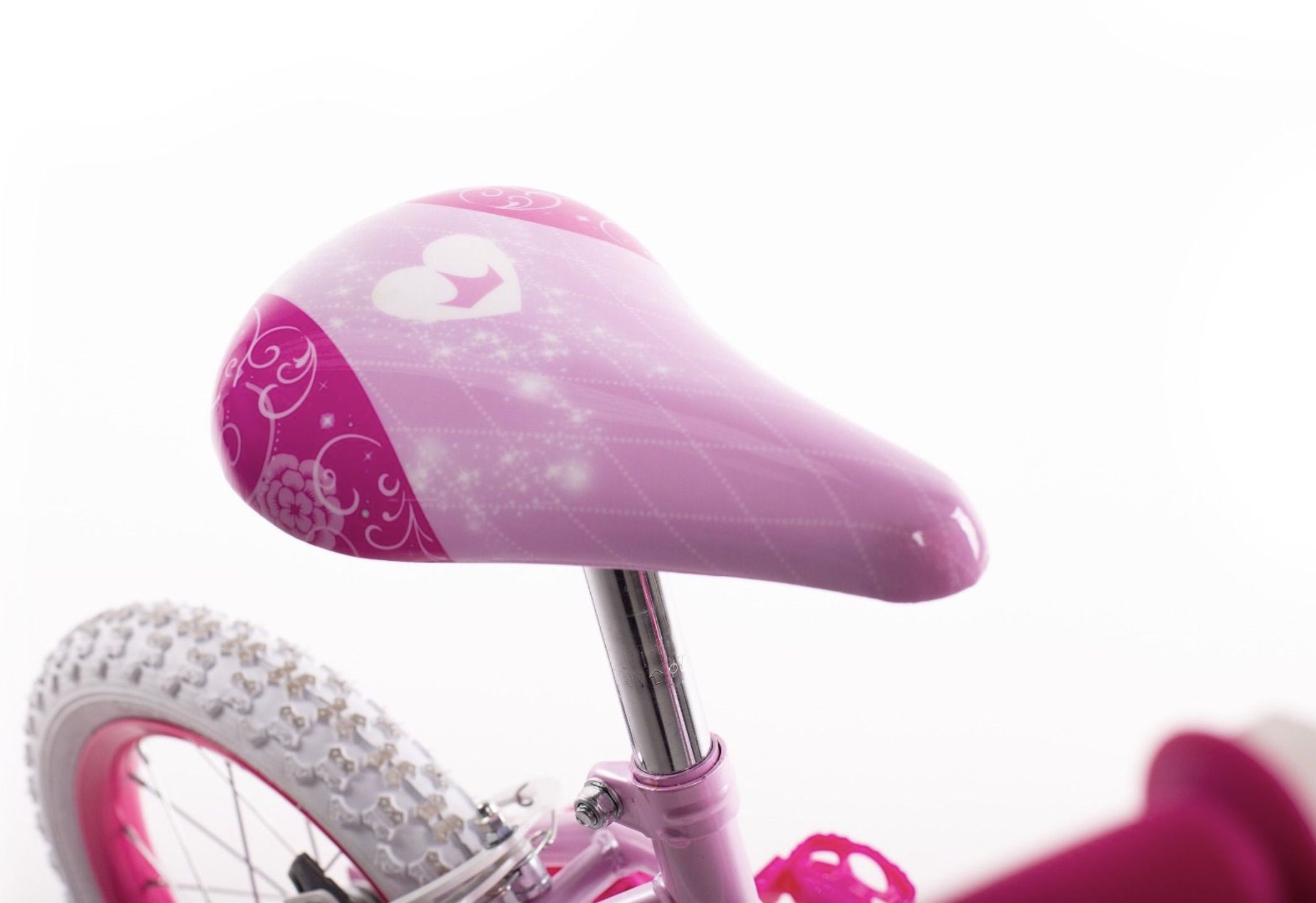 Let your little one ride in style with this kids bike featuring their favourite characters. The Huffy Disney Kids 14-Inch Bike is made for beginner riders with a desire to venture into the unknown. Kids learning to balance will appreciate the wide training wheels on this bike. Kids can pedal, cruise, and stop easily with easy-to-use brakes. With 14-inch knobby tires, a steel frame, and padded seat, this toddler bike goes anywhere your kid can go. Made for little kids who love Frozen and love to ride, this bike is recommended for kids ages 4 to 6 years old. You can adjust the seat height to fit your growing child.
