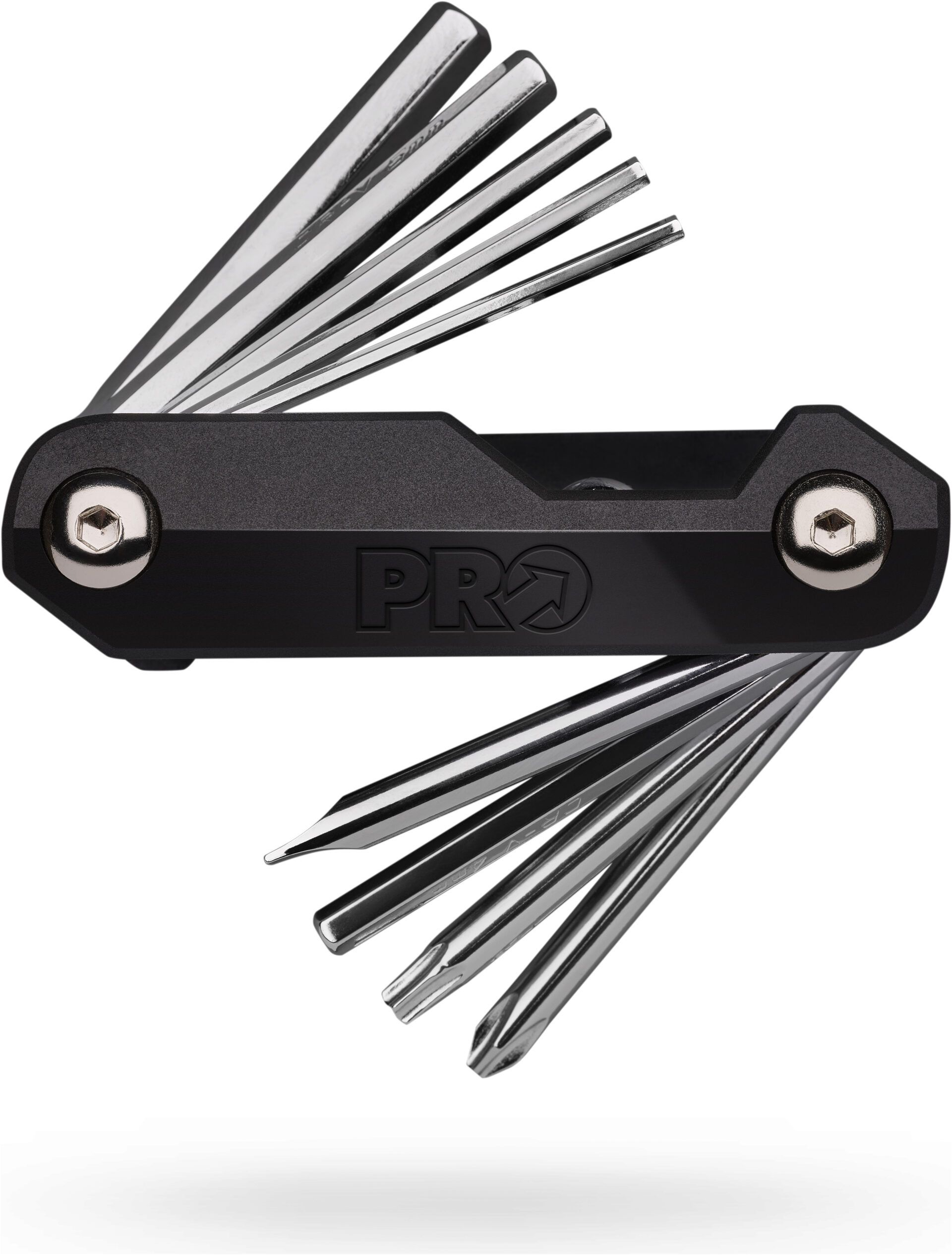 Designed to provide you with a better sports’ bicycle experience the Pro Mini Tool 10 Functions boasts 10 functions housed in a compact resin body. The hardened steel bits included in the tool are: Hex 2/2.5/3/4/5/6/8mm, Torque 25; as well as a PH2 and a Flat screwdriver.