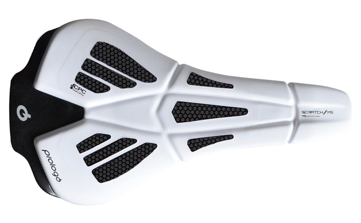 CPC: Connect Power Control: Prologo patented technology. The specially designed CPC surface features a mat of hollow cones of various heights and diameters, arranged for maximum benefits to the rider. These include optimum grip, shock absorption and air cooling. It also enhances blood flow through a massaging action, reducing numbness and tendon related discomfort.