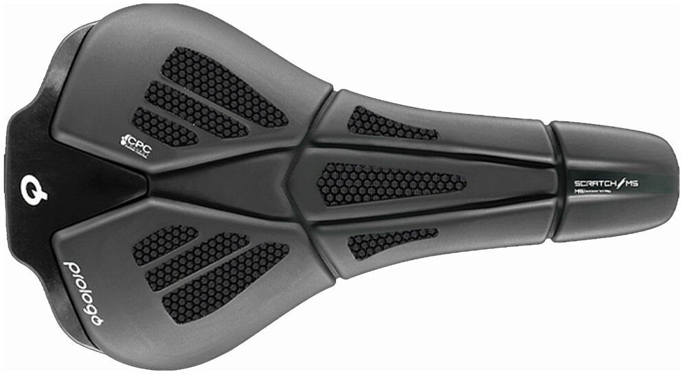 Thanks to the new "T SHAPE" design, size and ergonomics the M5 Scratch range is suitable for use by both men and women. The measurements are 250 x 140mm in width. The new MSS Multi Section System seating system, designed in co-operation with the Politecnico of Milano, helps improve comfort and performance; the active foam separated to create 5 zones working in a smart and individual way favoring the natural movement of the pedaling movement. This absorbs the vibrations that the carbon fibre body transfers to the over-saddle. The Round Shape of the M5 creates stability and support for the lumbar areas; moreover the distribution of the pressures on a greater surface.