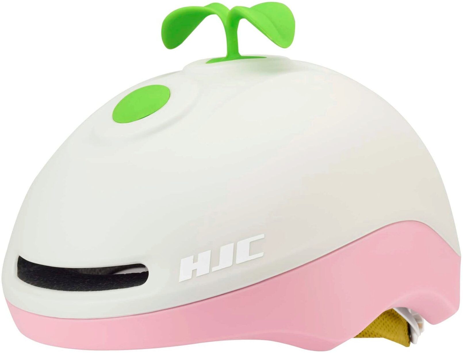 The light HJC Gleo Kids' Cycling Helmet is softly cushioned and comes in exciting ice cream and berry shades, along with a foam accessory of green clip-on leaves that your children will adore. A wide range of sizes will allow every kid in the family to sport one. Sweet visage aside, this is a technical helmet that offers an exceptional fit, thanks to the automatic self-adjusting SELFIT™ system, and easy access via a magnetic buckle. Most importantly it is sturdily built, with two tiers of protection in the form of a polycarbonate layer in-moulded with EPS, and lined with soft polyester tricot fabric to keep little heads both safe and comfortable.