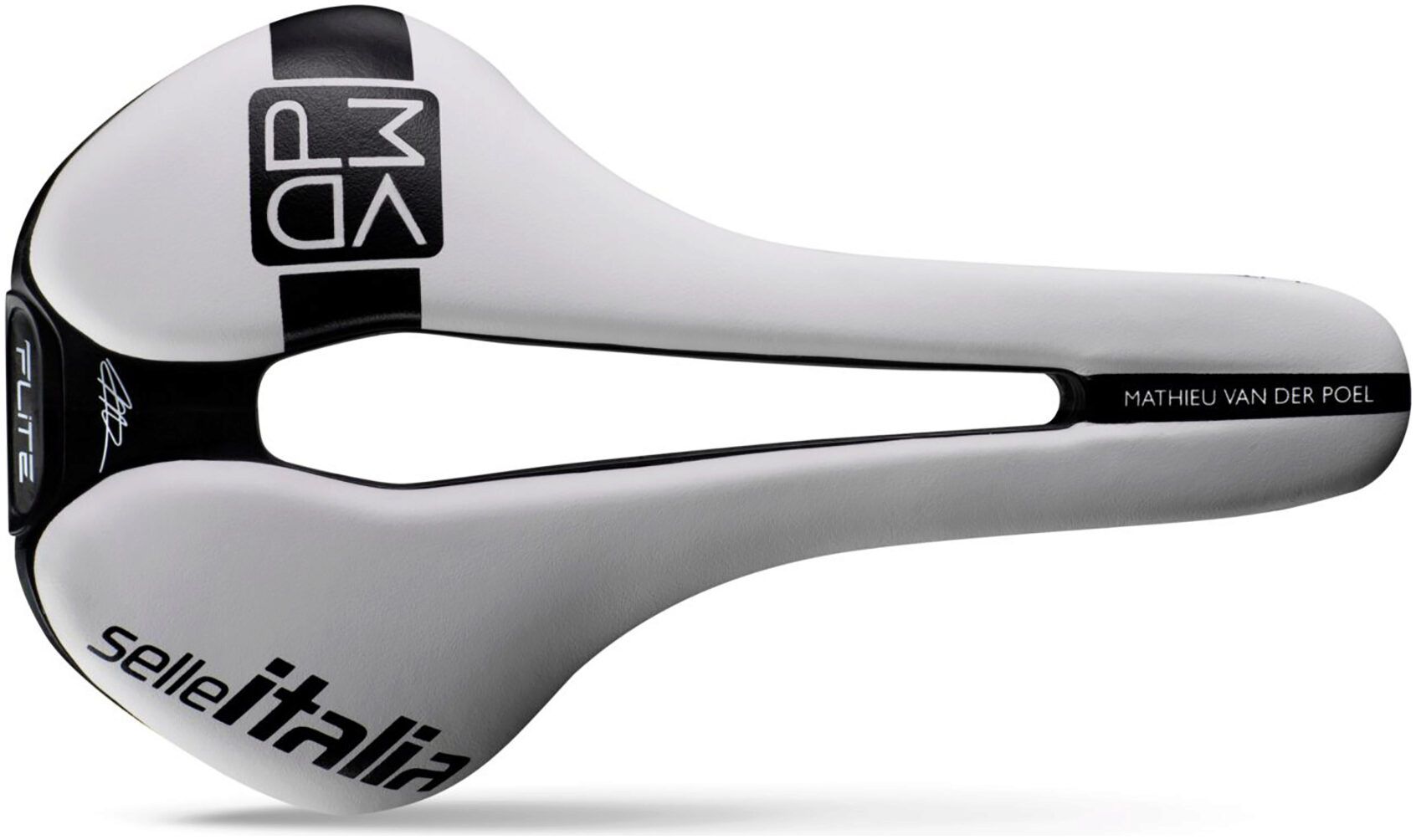 Made in white, like the Flite Boost usually used by Mathieu during the race, it has a logo with the word MVDP created “ad hoc” for the athlete.